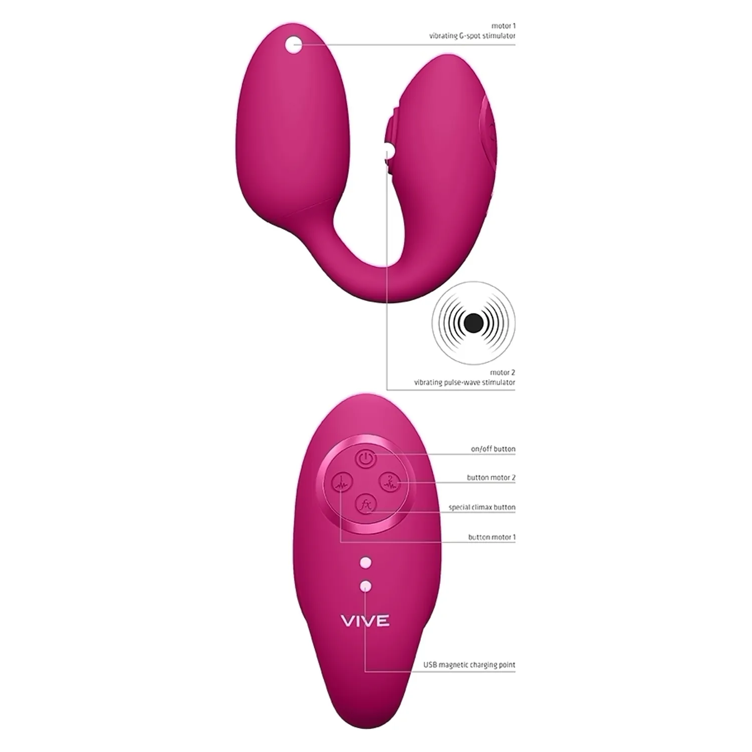 Acest mecanism elegant proiectat are doua oua care functioneaza separat, care ofera stârnire dubla, cele două parti avand motoare distincte si independente. La un capat contine un motor vibrant NG F1 cu 10 functii pentru punctul dvs. G, iar pe celalalt capat contine un Motor NG F1 Pulse-Wave cu 10 functii care va maseaza clitorisul. Acest fapt inseamna ca va puteti configura jucaria pana la 100 de combinatii diferite. Acest ou vibrant de dragoste a fost conceput avand in vedere forma naturala a trunchiului si a vaginului.