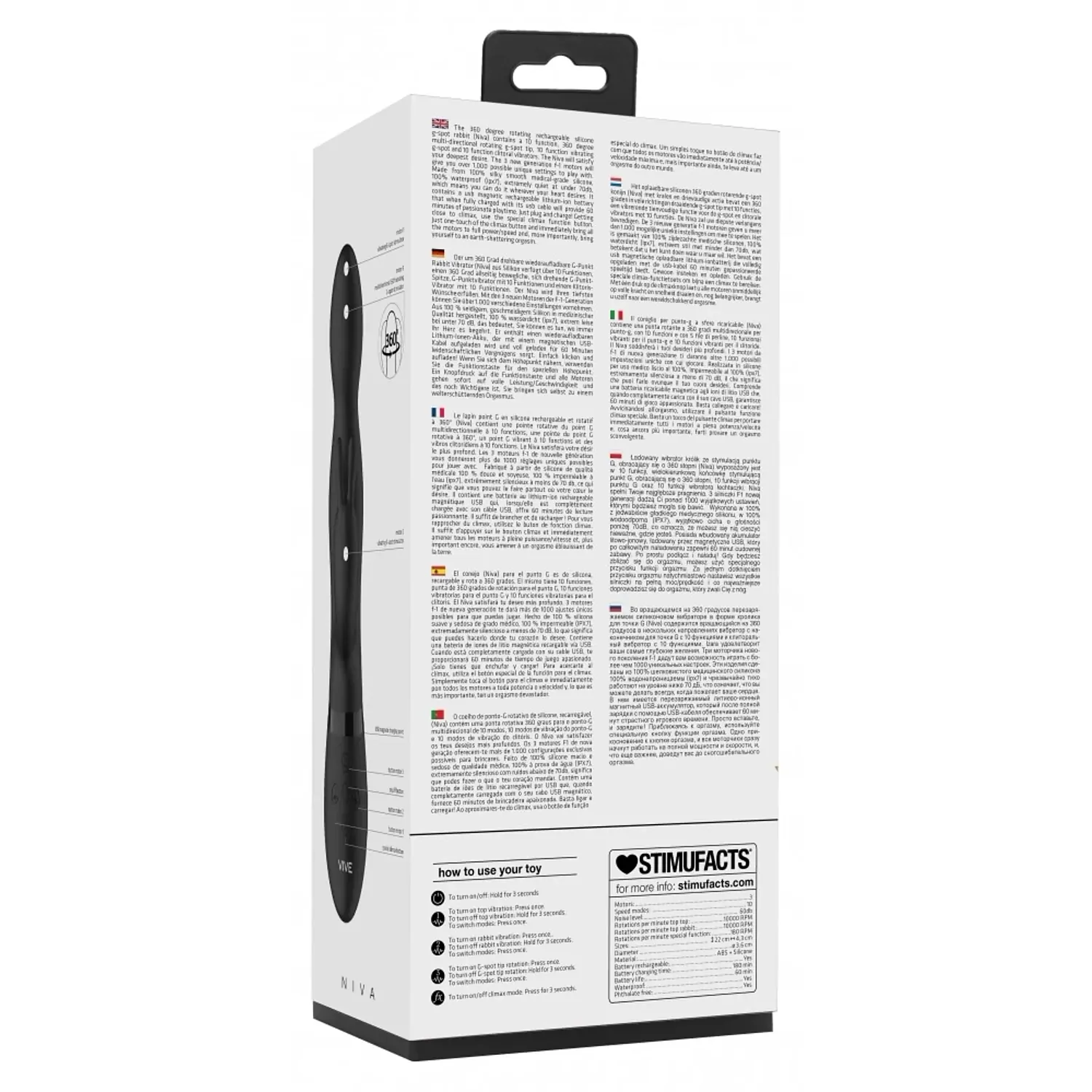 Niva vă va satisface cele mai profunde dorințe și vă va intensifica orgasmele. Combinația a 3 stimulări diferite oferă peste 1.000 de feluri unice posibile pentru a te juca. Niva este fabricat 100% din silicon medical moale, mătăsos, 100% impermeabil (ipx7) și extrem de silențios, cu un grad de zgomot mai mic de 60db.