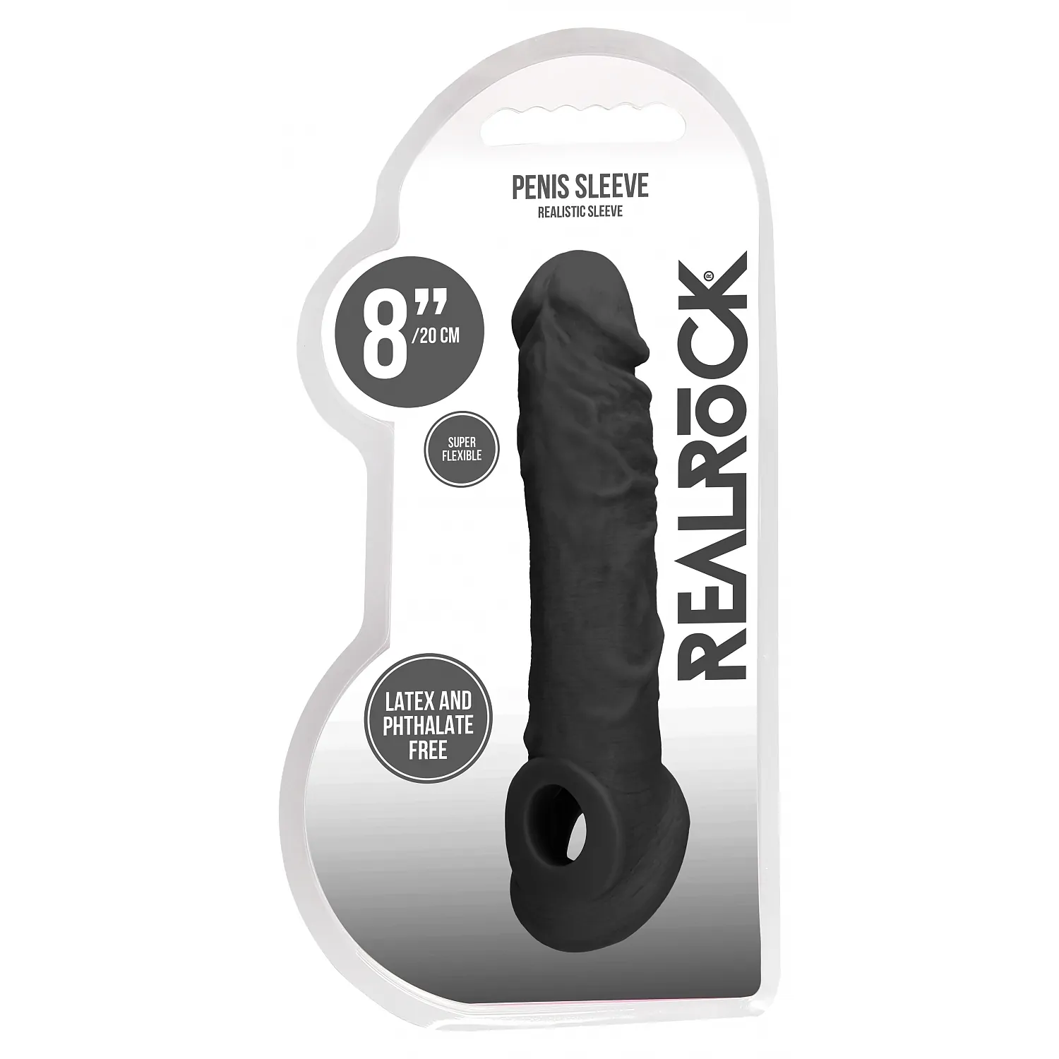 Prelungitor Mădular Sleeve RealRock 8 este prevăzut cu un gland bine definit și vene proeminente lucrate manual cu deosebită atenție la detalii pentru a oferi o experiență cât mai realistă utilizatorului. La bază este însușit cu un inel pentru testicule care se pune în jurul scrotului și are rolul de a crește senzațiile bărbatului și în același timp amână ejacularea, ajutându-l să reziste mai mult în dormitor.