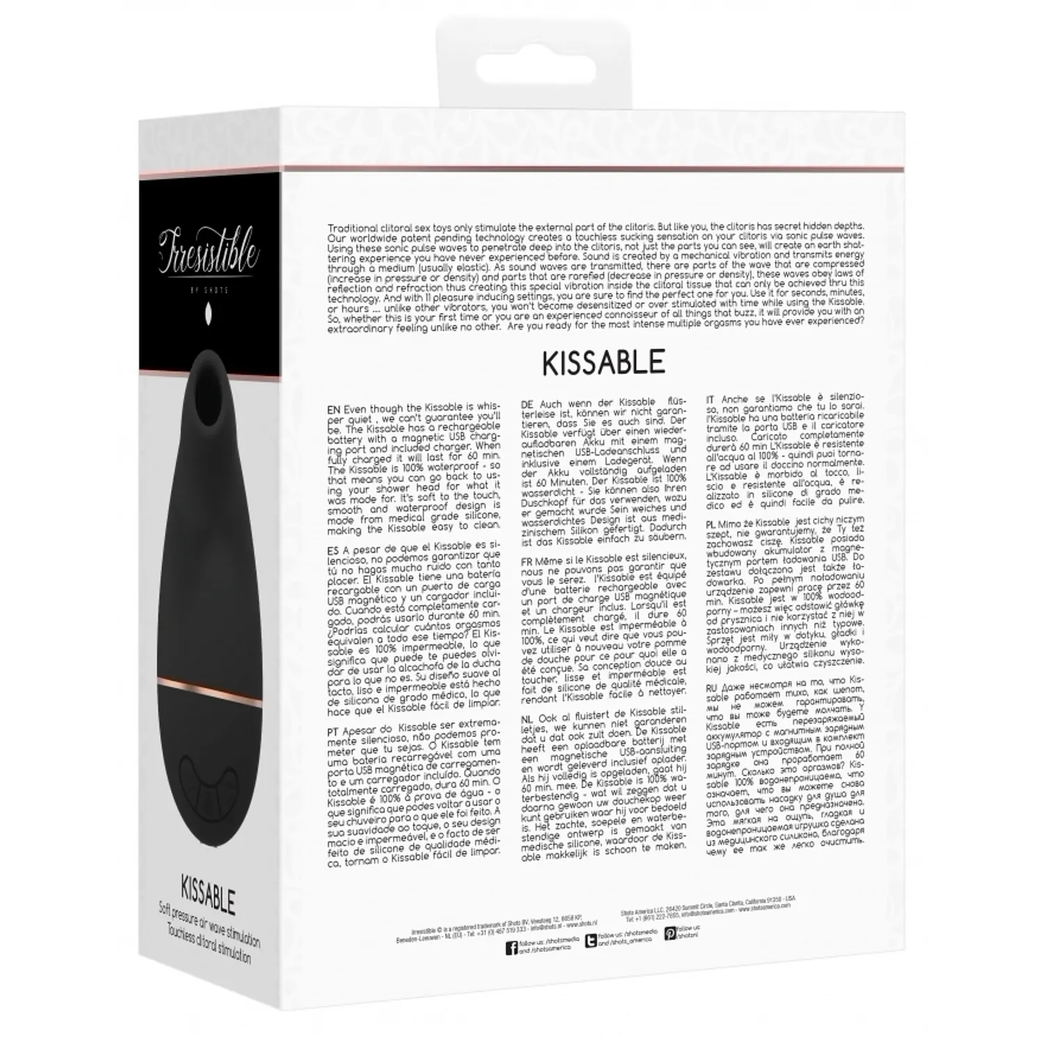 Vibrator Clitoridian Kissable va înconjoară clitorisul fără să-l atingă și îl provoacă prin valuri de aer de presiune moale, care alcătuie o vibrație unică care pătrunde în țesut, care nu poate fi obținută fără utilizarea acestei tehnologii.