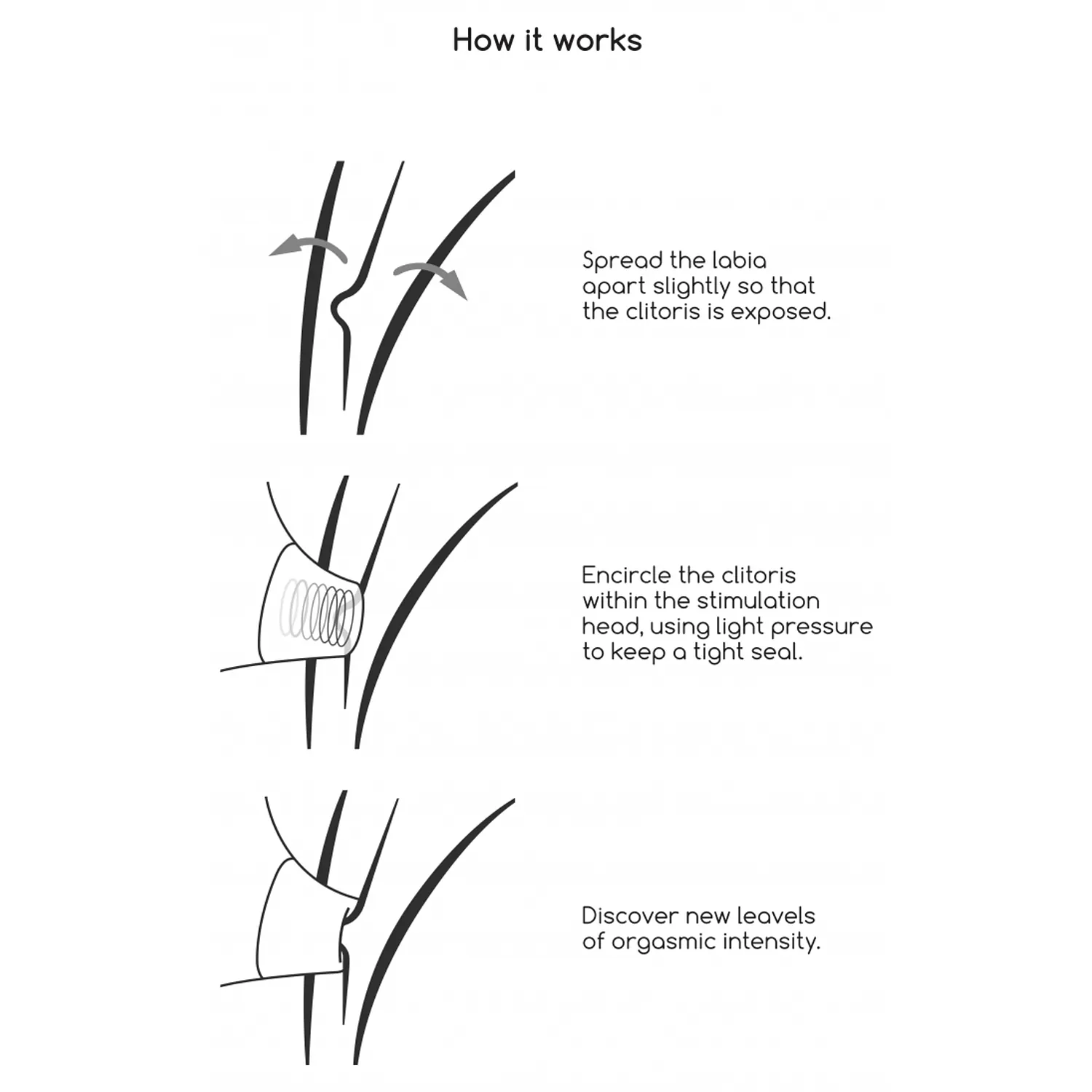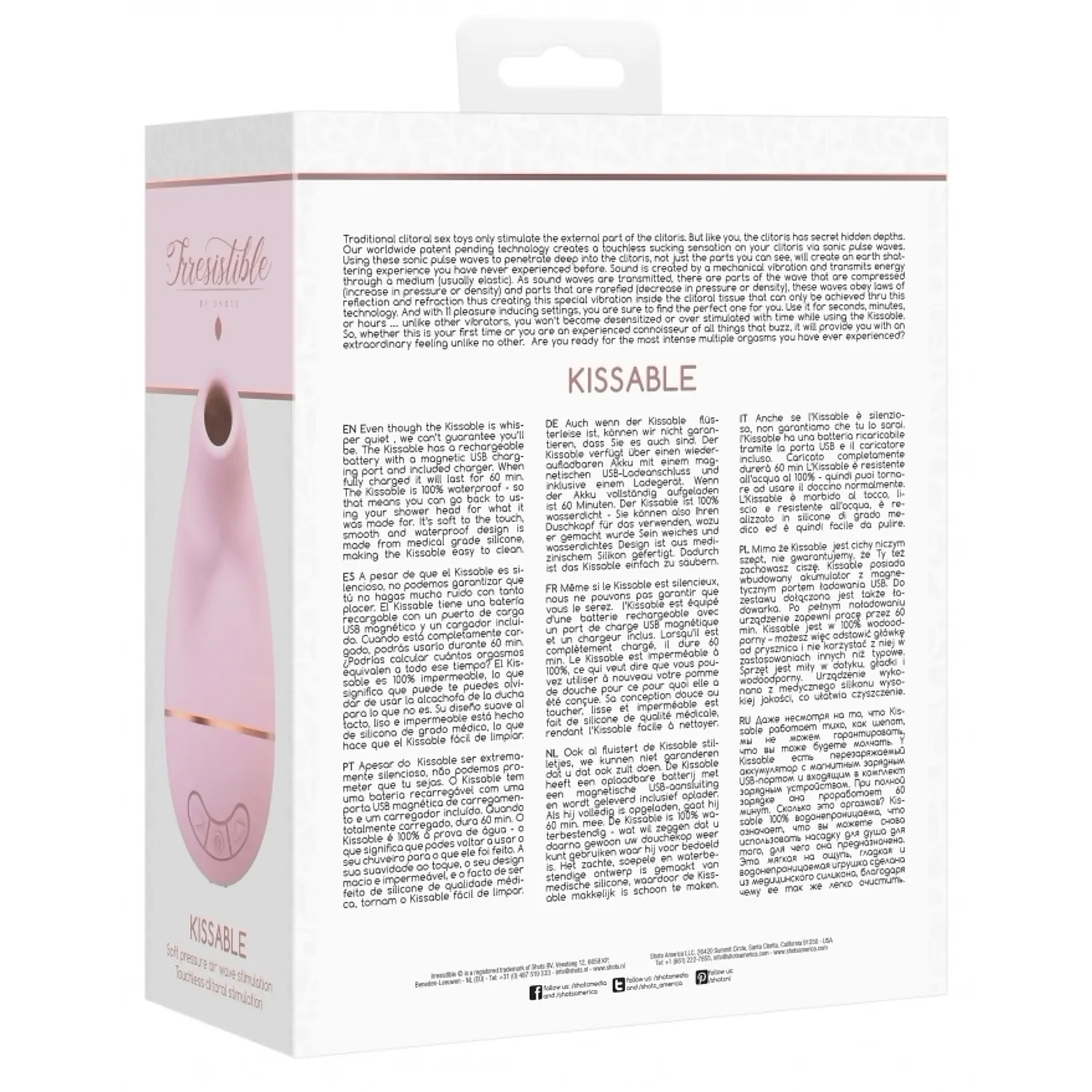 Vibrator Kissable Irresistible va înconjoară clitorisul fără să-l atingă și îl stimulează prin valuri de aer de presiune moale, care alcătuie o vibrație unică care pătrunde în țesut, care nu poate fi obținută excluzând utilizarea acestei tehnologii.