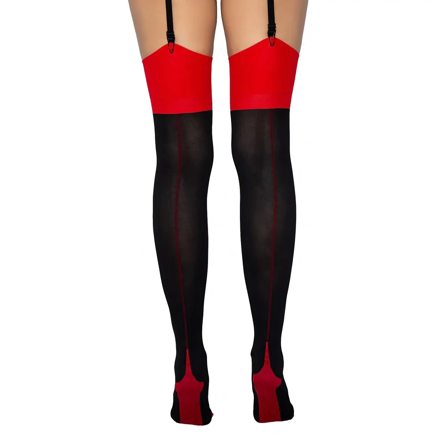 Roșul este considerată culoarea pasiunii, dar în combinație cu negru aceste două culori devin irezistibile. Incită imaginația iubitului tău împreună de acești Dresuri Contrast Top Thigh. Picioarele dumneavoastră vor arăta pur și simplu superb. Acest obiect este lucrat dintr-un material cu însușiri elastice.