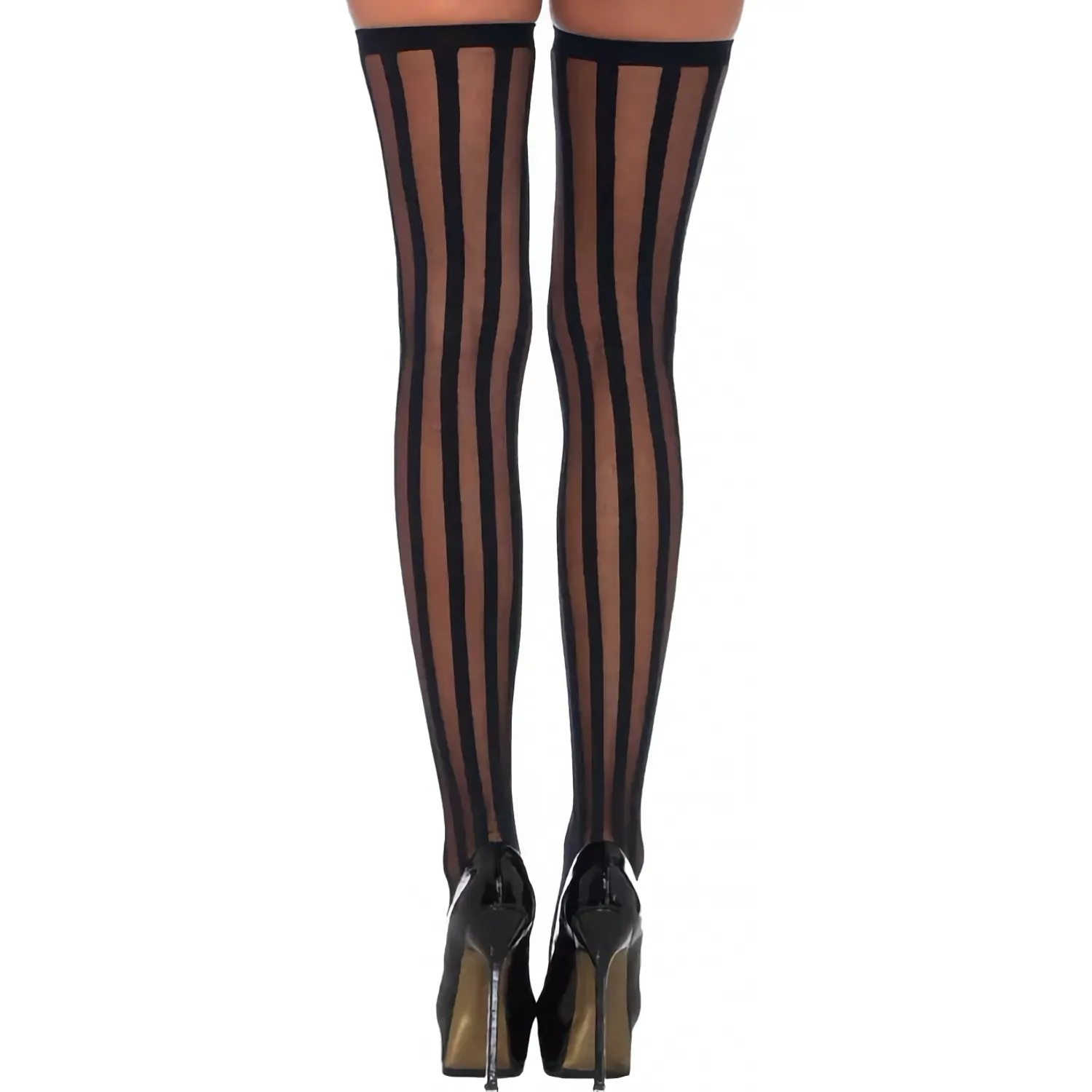 - Ciorapii au dungi verticale opace negre care crește un efect vizual distinct. Articolul este fabricat dintr-o țesătura elastică.