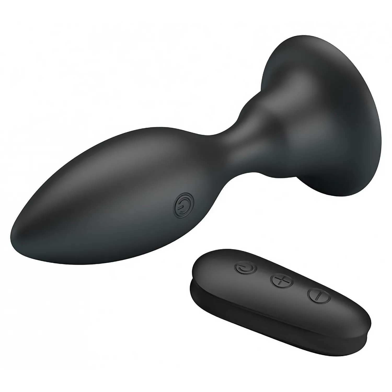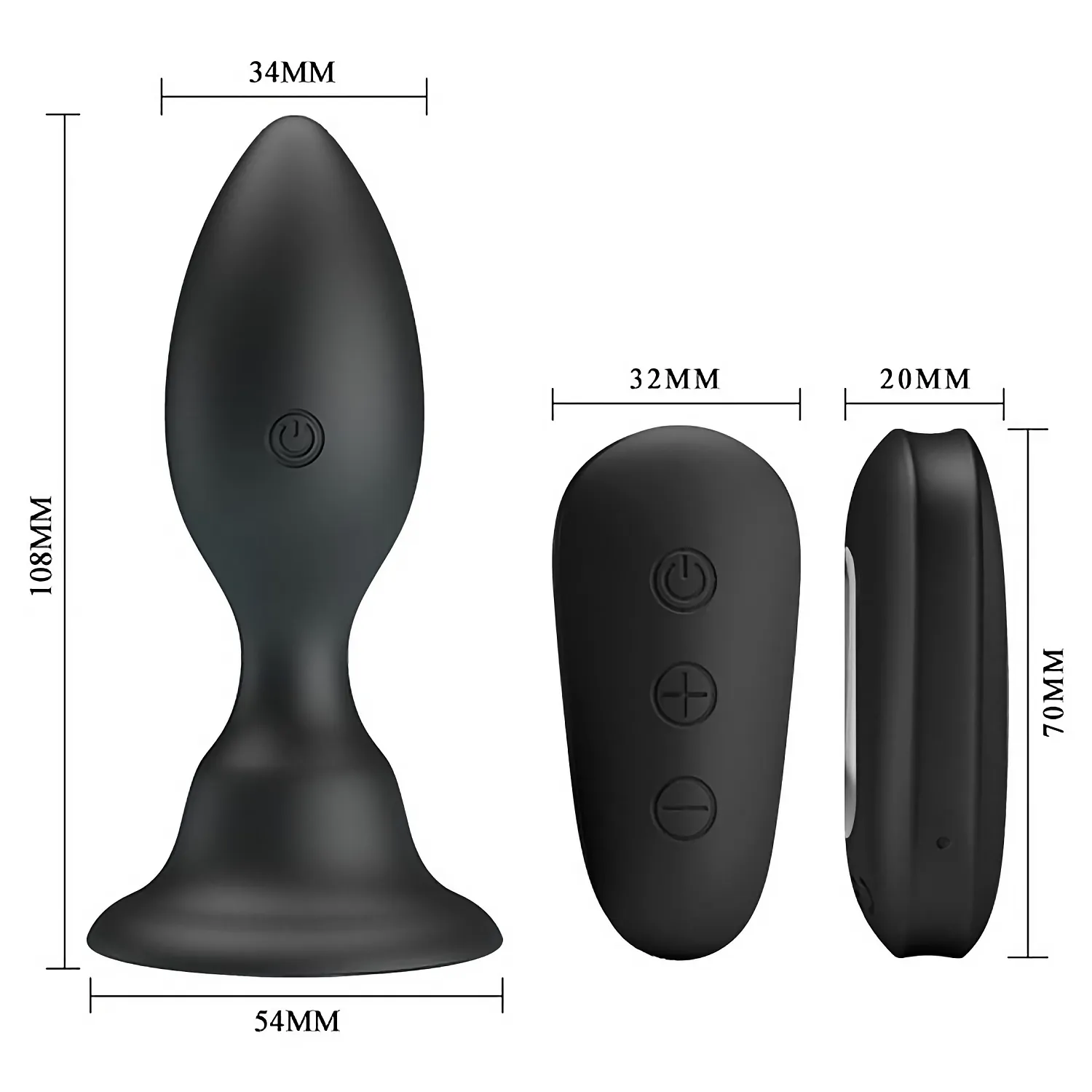 Acest dop anal vibrator reîncărcabil negru cu telecomandă de la Mr. Play, are un vârf conic subțire și o regiune netedă, astfel încât este ușor de introdus și de bucurat.