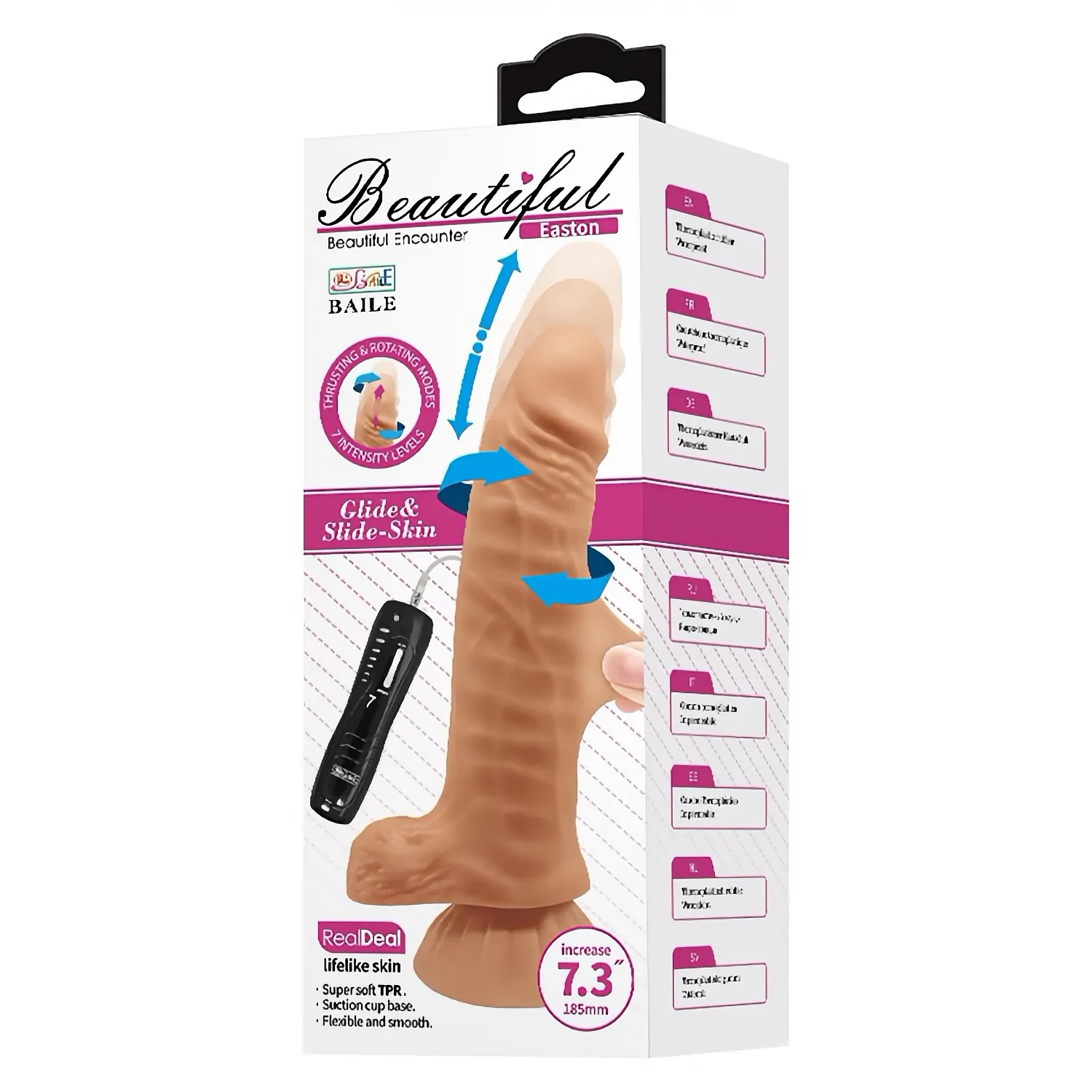 Vibrator Realistic Beautiful Easton Maro are o funcție rotativă și de împingere, este conceput pentru a vă dărui o practică de neuitat cu 7 moduri de vibrație.