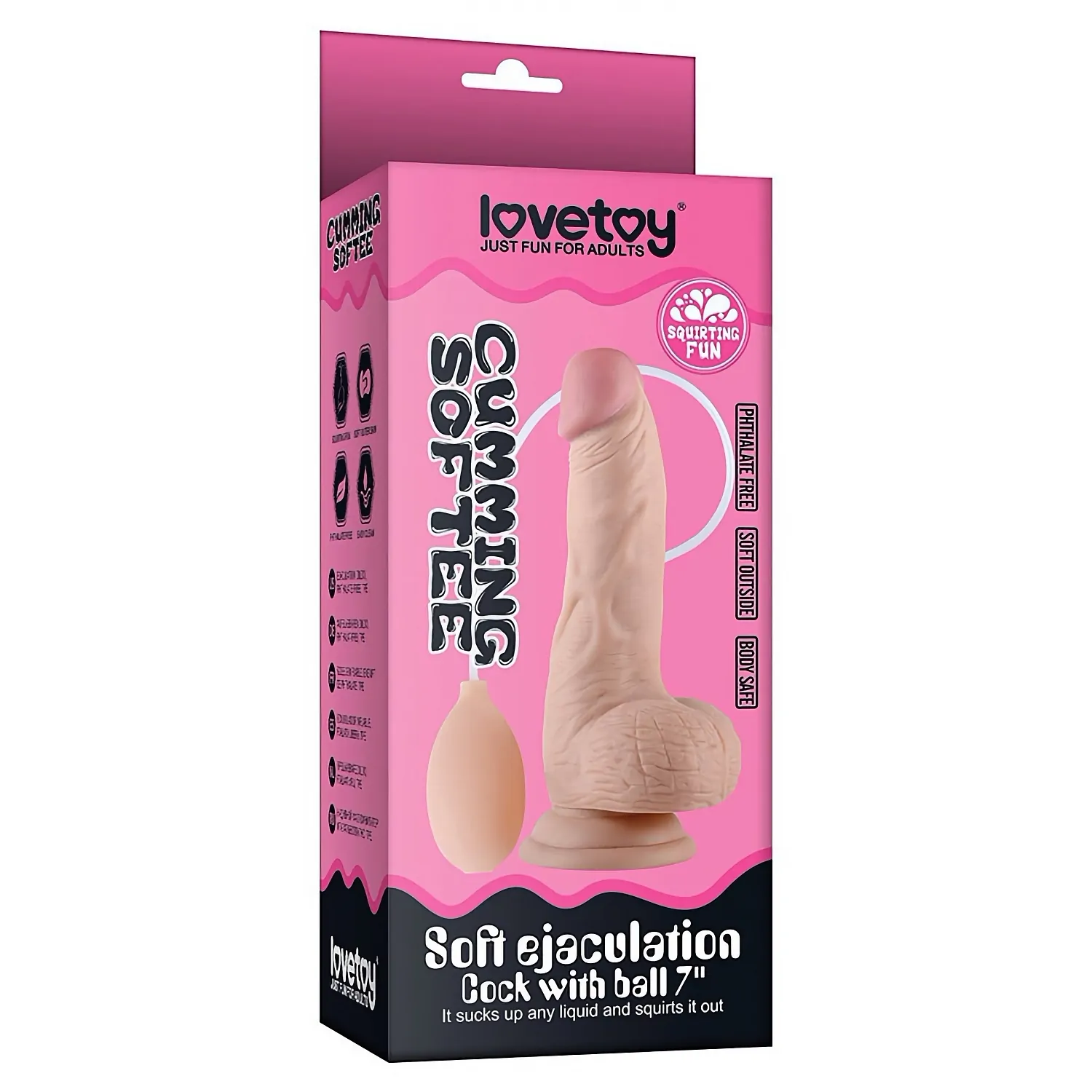 Lovetoy Soft Cu Ejaculare este un penis virtual realistic ce are 17.8 cm lungime iar în diametru 4.4 cm. Este lucrat din TPE, TPR, un material ce imită extrem bine dermă atât la contact cât și la aspect.