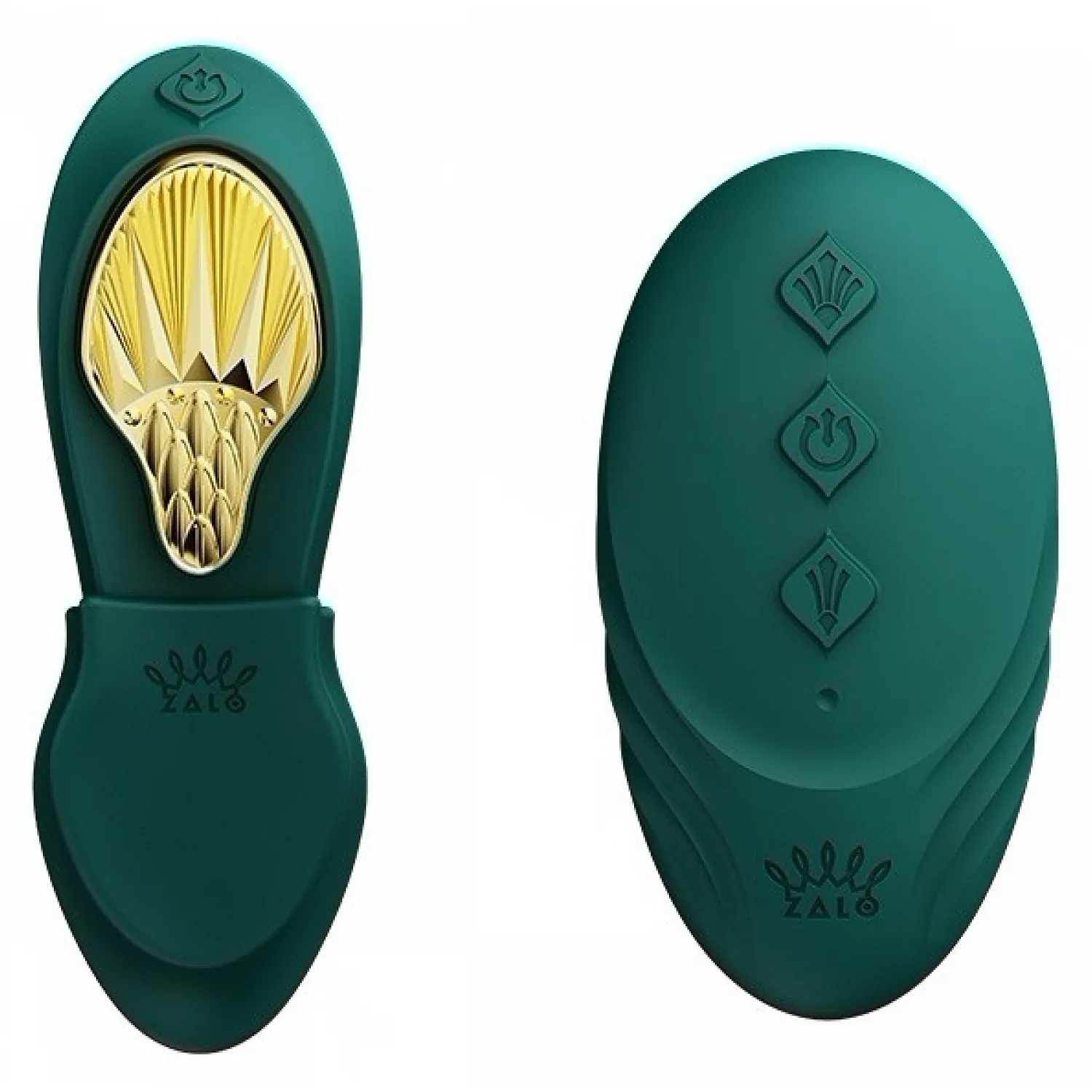 Un magnet frumos, strălucitor în forma de scut auriu fixează vibratorul în poziție atunci când este plasat în afara chiloților pentru a fi purtat discret sub haine în timpul unei sesiuni wow sau în timp ce te joci peste tot cu un partener.