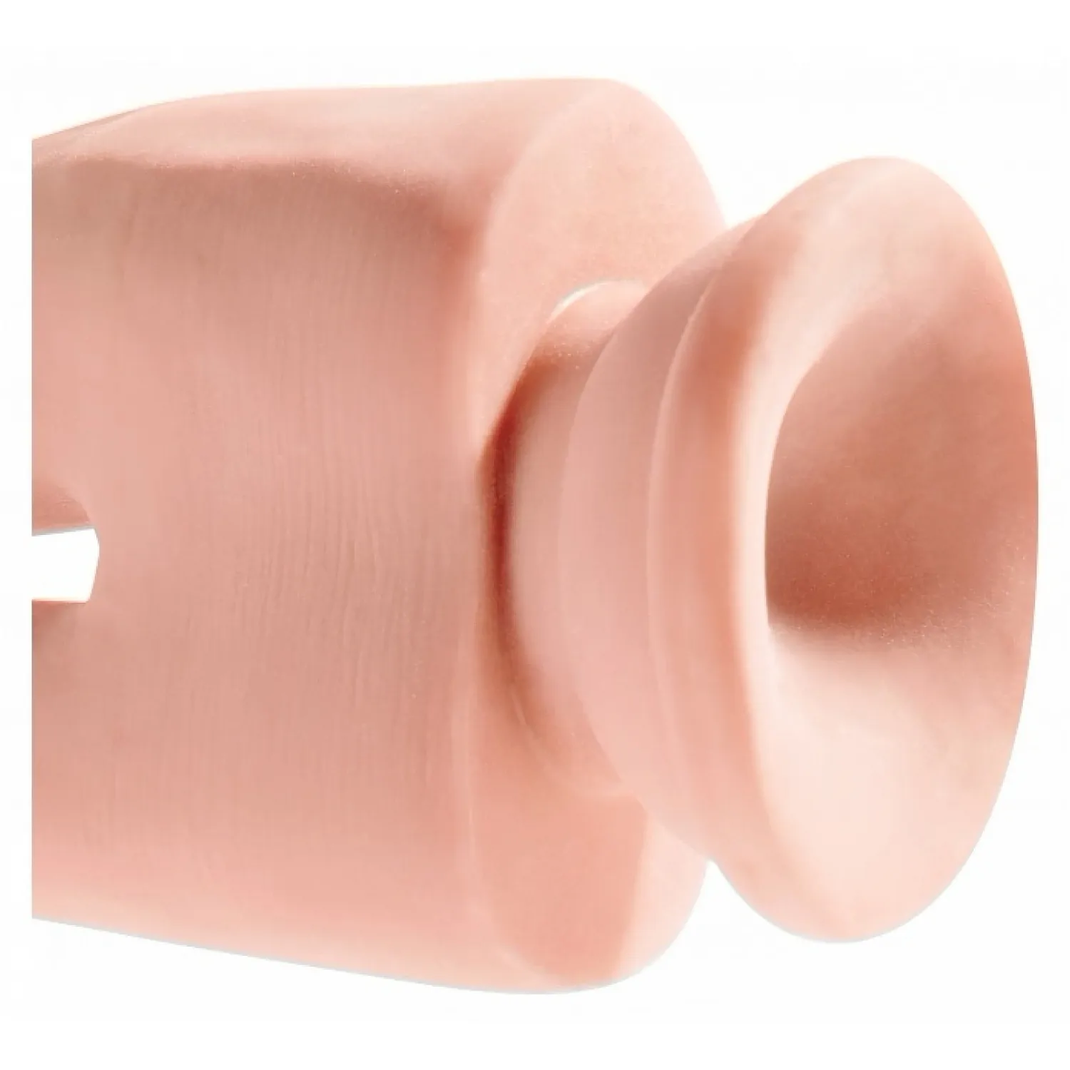 Penis artificial Dublu King Triple Density are un ax partea interioară rigid, o epidermă catifelat exterioară, detalii de textură realiste și o ventuză solidă!