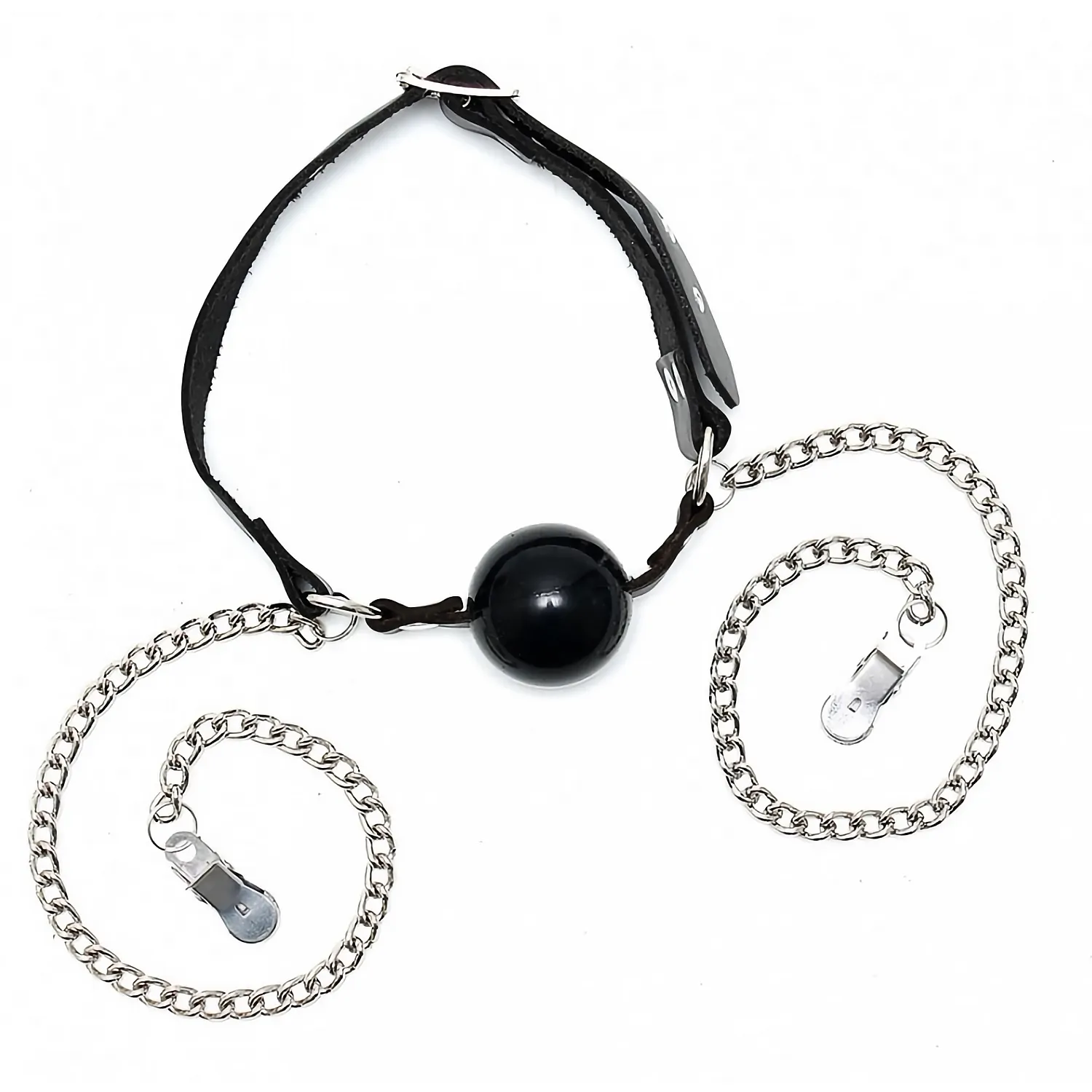 Căluș Cu Cleme pentru Sfârcuri este un set special conceput pentru pasionații de BDSM, fiind compus dintr-un căluș legat de două clame pentru sfârcuri.