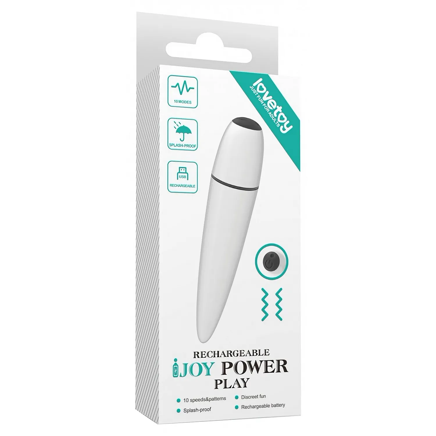 Vibratorul iJoy Power Play este confecționat din ABS și are 10.5 cm lungime iar un calibru de 2 cm. Cu toate că este mic și discret, motorul său este suficient de intens pentru a satisface orice femeie.