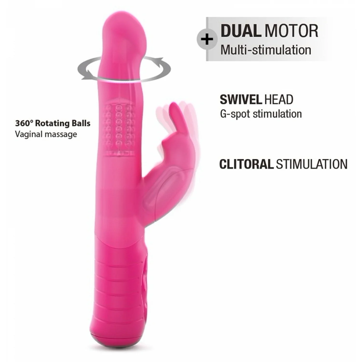 Micul iepure care vibrează pe lateral are grijă de surescitarea clitorisului, în timp ce rândurile de bile rotative situate în trupul vibratorului măresc stimularea genitală de zece ori cu fiecare trecere și intrare a jucăriei sexuale.