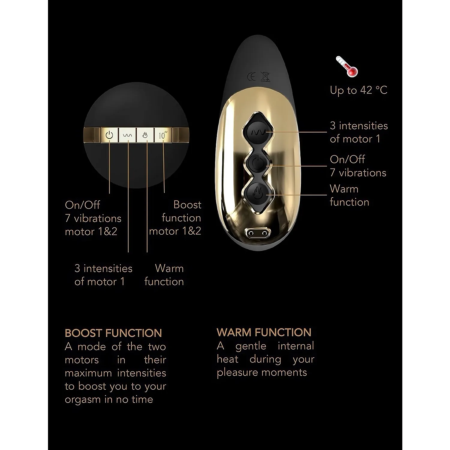 Funcția de boost este un mod specific în care motoarele folosesc intensități maxime pentru a stimula un orgasm. Funcția de încălzire (până la 42 de grade) oferă o căldură atrăgătoare în umplută luptă.