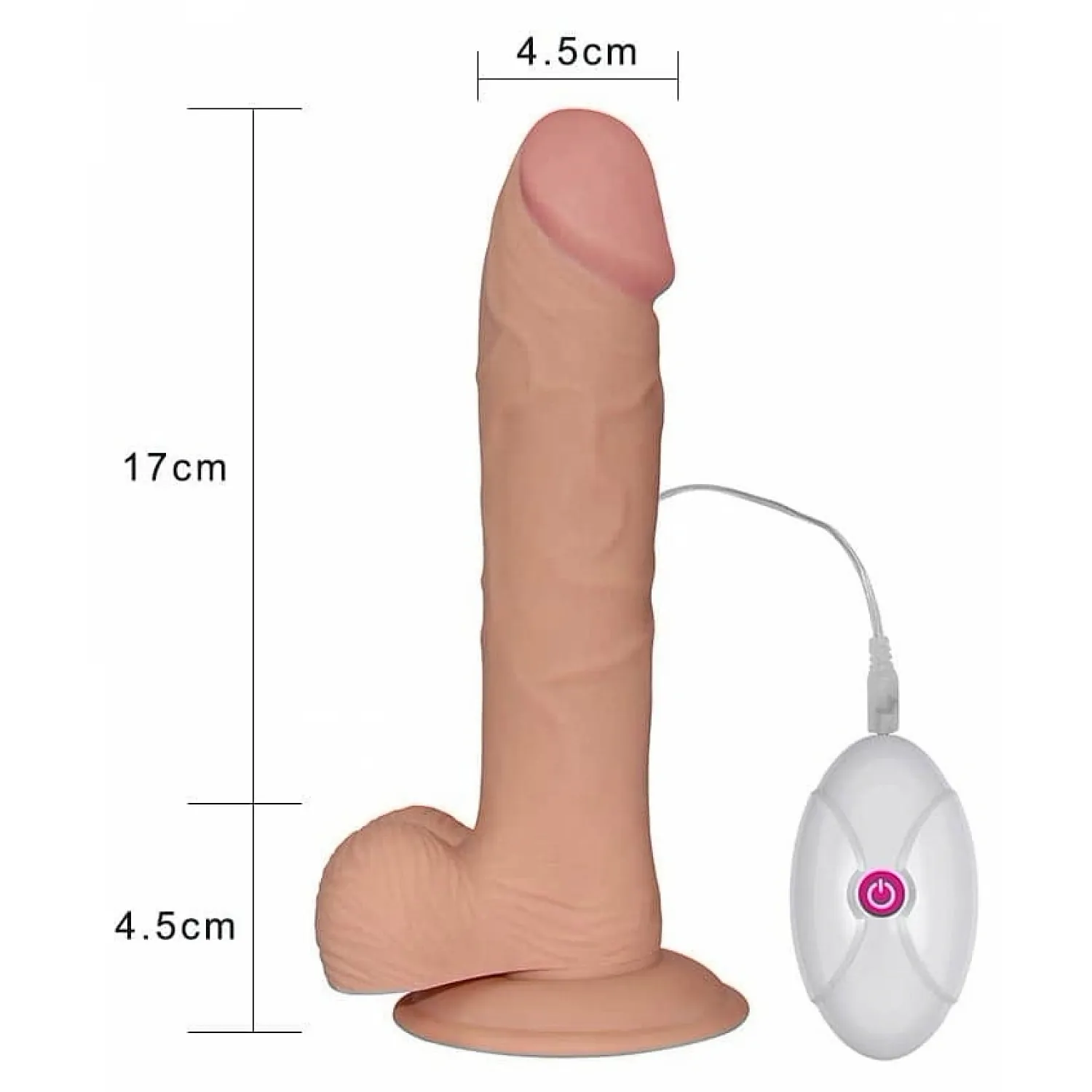Vibratorul realistic cu tele-comandă Ultra Soft Dude Lovetoy are 21.5 cm lungime, 4.5 cm în diametru și este meșteșugit din material neted și plăcut la atingere.