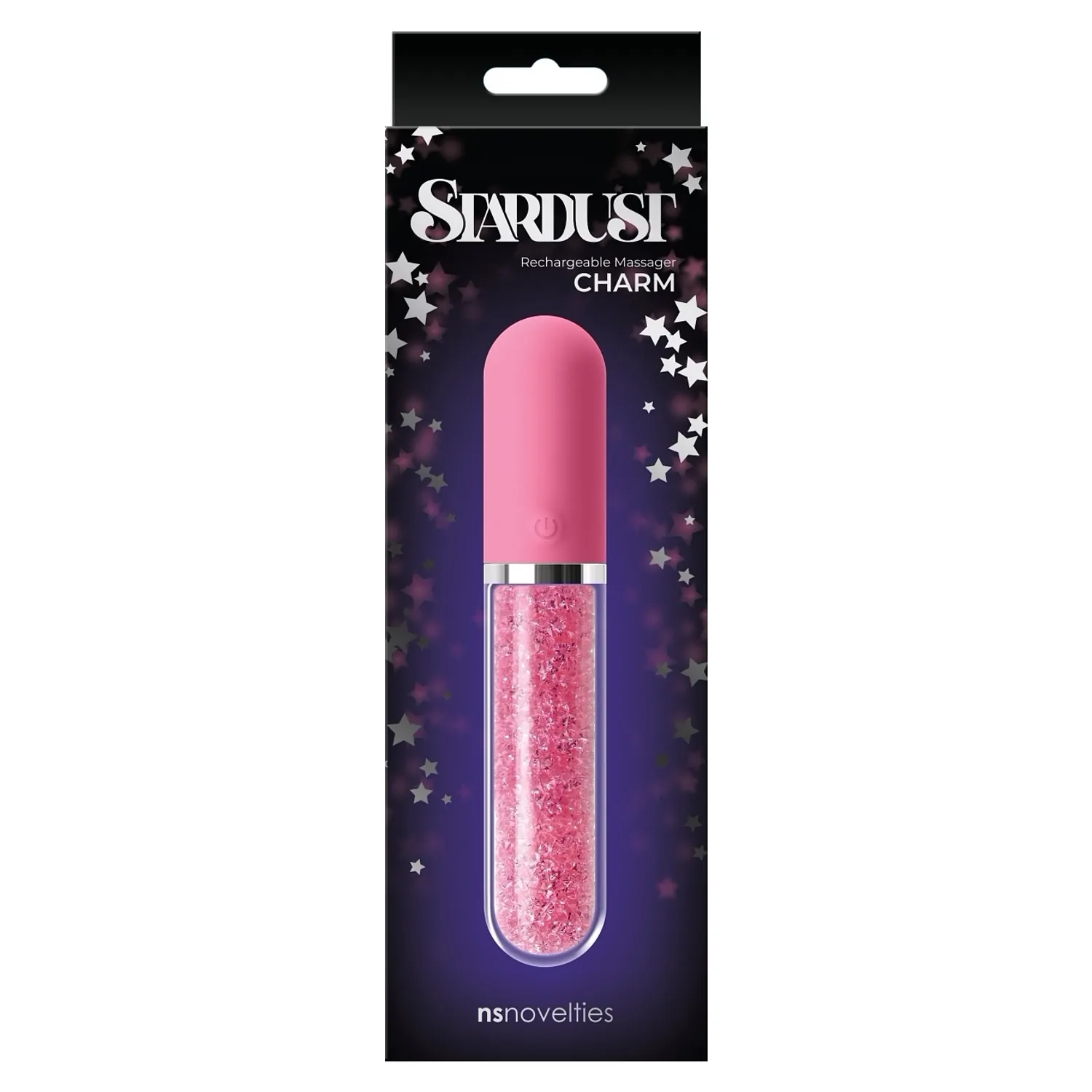 Vibratorul roz Stardust Charm Ns Novelties este conceput dintr-o formulă de silicon și ABS, are colorit roz, o extindere de 16 cm și un diametru de 3 cm.
