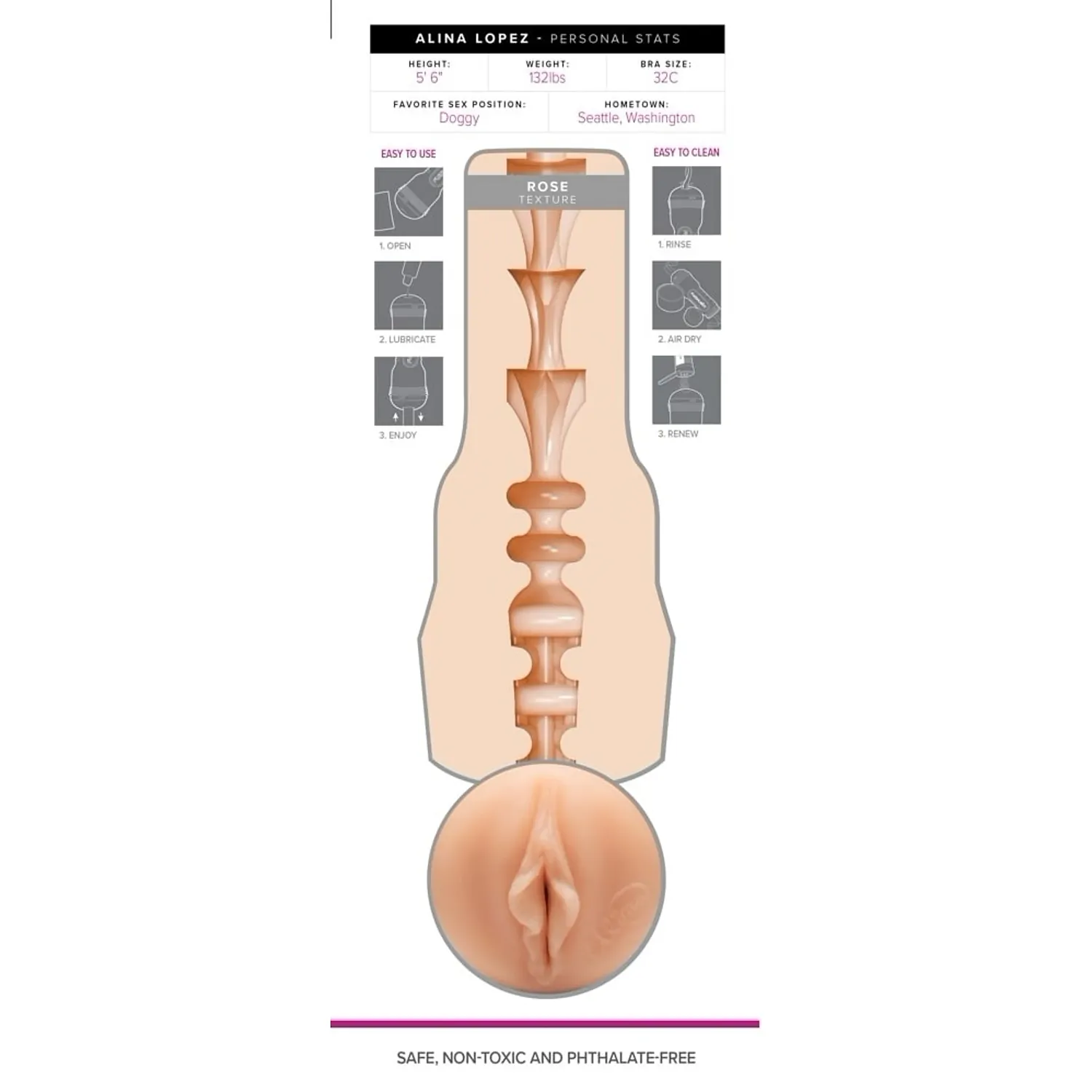 Pentru o alunecare mai ușoară va sfătuim utilizarea unui lubrifiant. Curățați Alina Lopez Rose înainte de folosire cu o soluție speciala de igienă pentru astfel de produse.