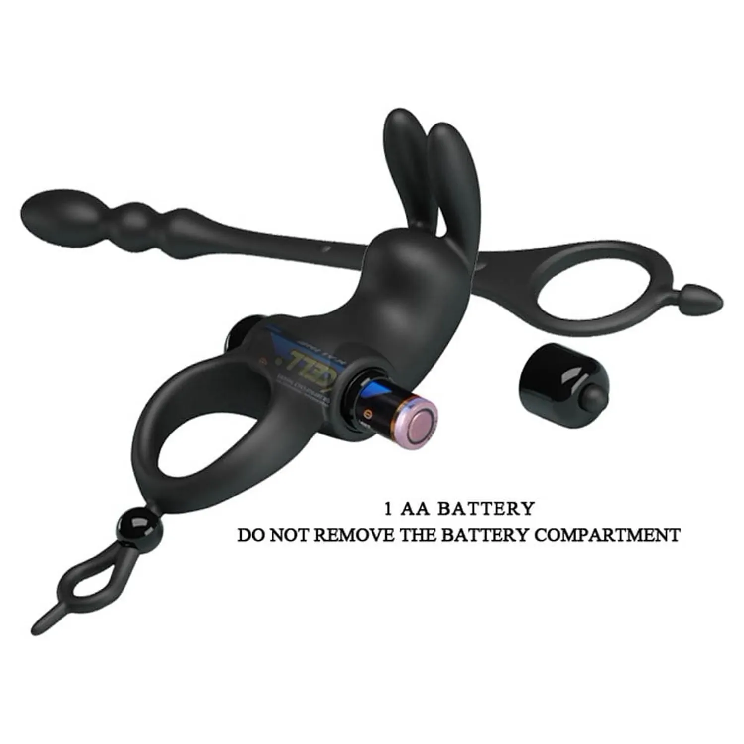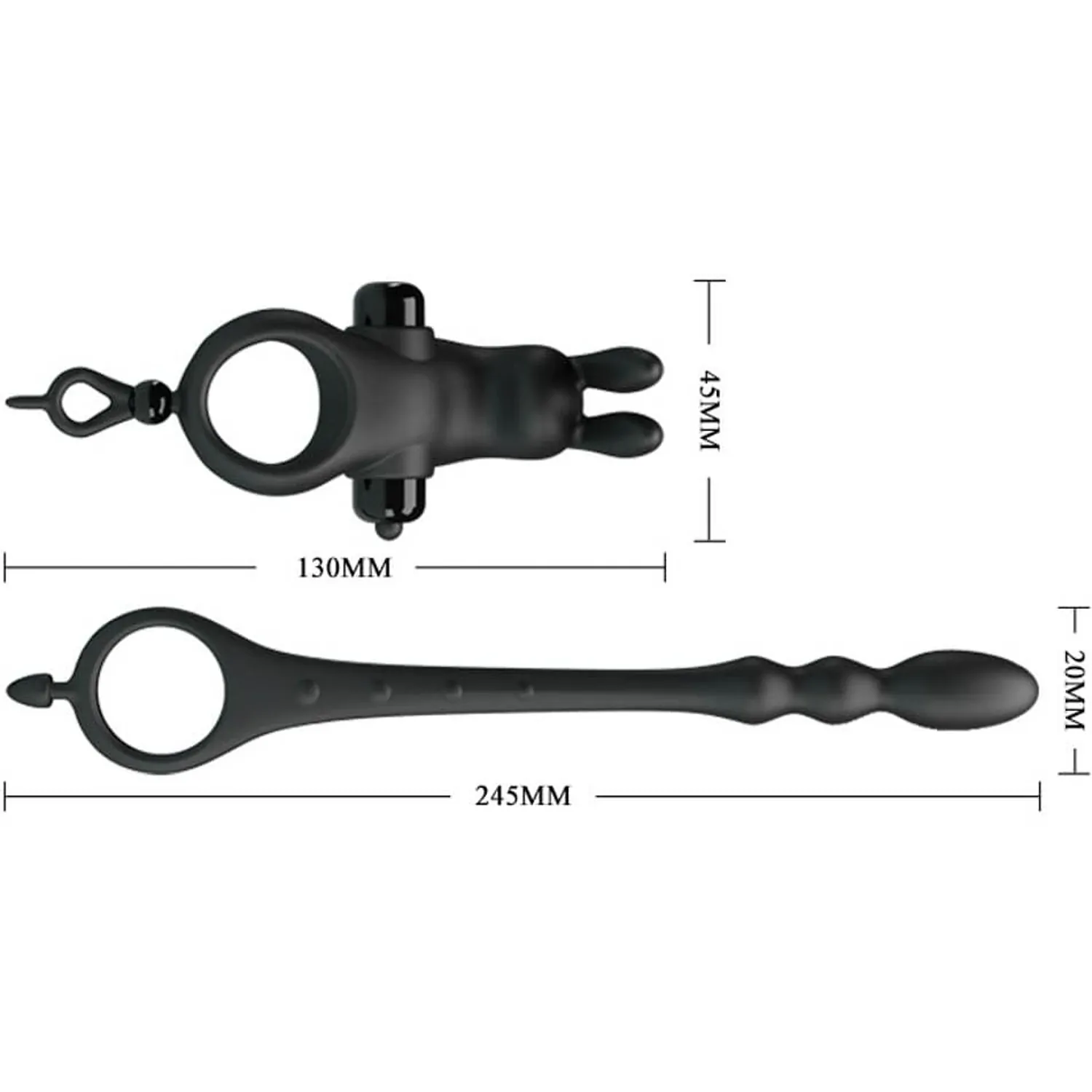 După ce pui inelul pe penis, poți folosi plug-ul anal pentru a obține un plus de plăcere. Deasupra inelului, este însușit cu un stimulator pentru clitoris, în formă de urechiușe de iepure, pentru a dărui un plus de bucurie partenerei. Are de asemenea vibrații puternice ce te susține să transformi membrul într-un adevărat vibrator.