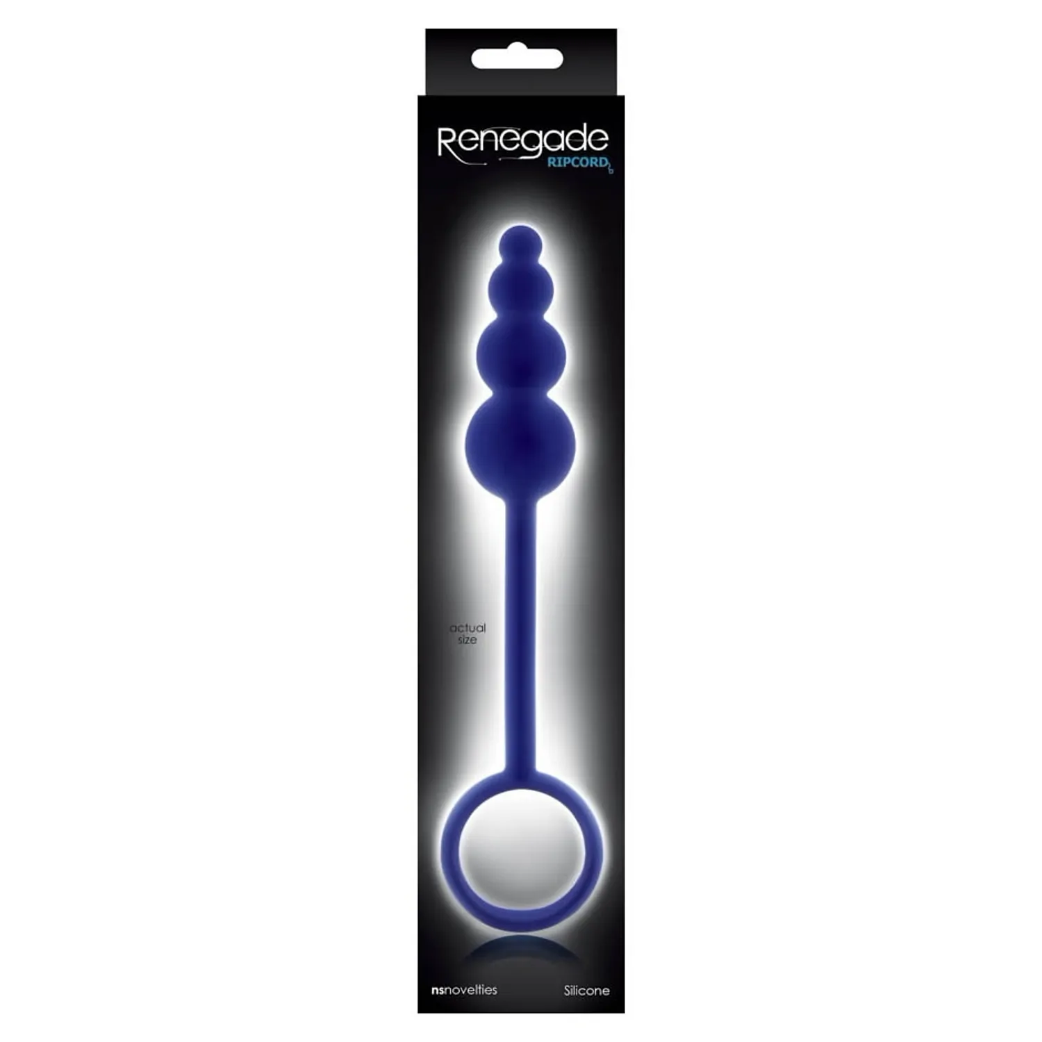 Bile anale Renegade Ripcord din silicon cu mărgele foarte flexibile de forme diferite plasate pentru o inserare mai ușoară. La capătul acestor bile se află un inel pentru o manevrare mai ușoară în timpul folosirii. Acest inel se poate aplica la baza membrului iar bilele anale pot penetra anal posesorul inelului sau partenera în funcție de dorința lor.