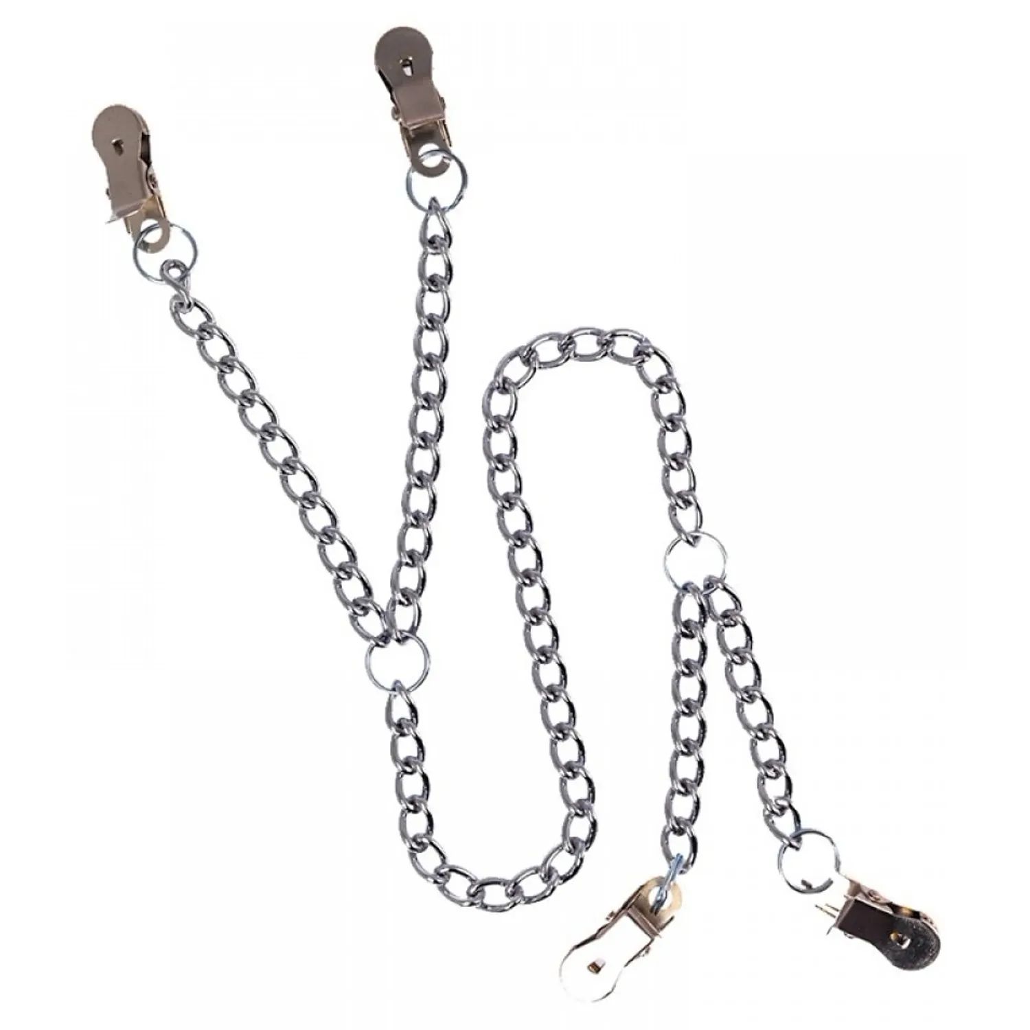 - Setul conține patru cleme care conectează sfârcurile și labiile printr-un lanț. - Ideal pentru nopți BDSM lipsit de limite.