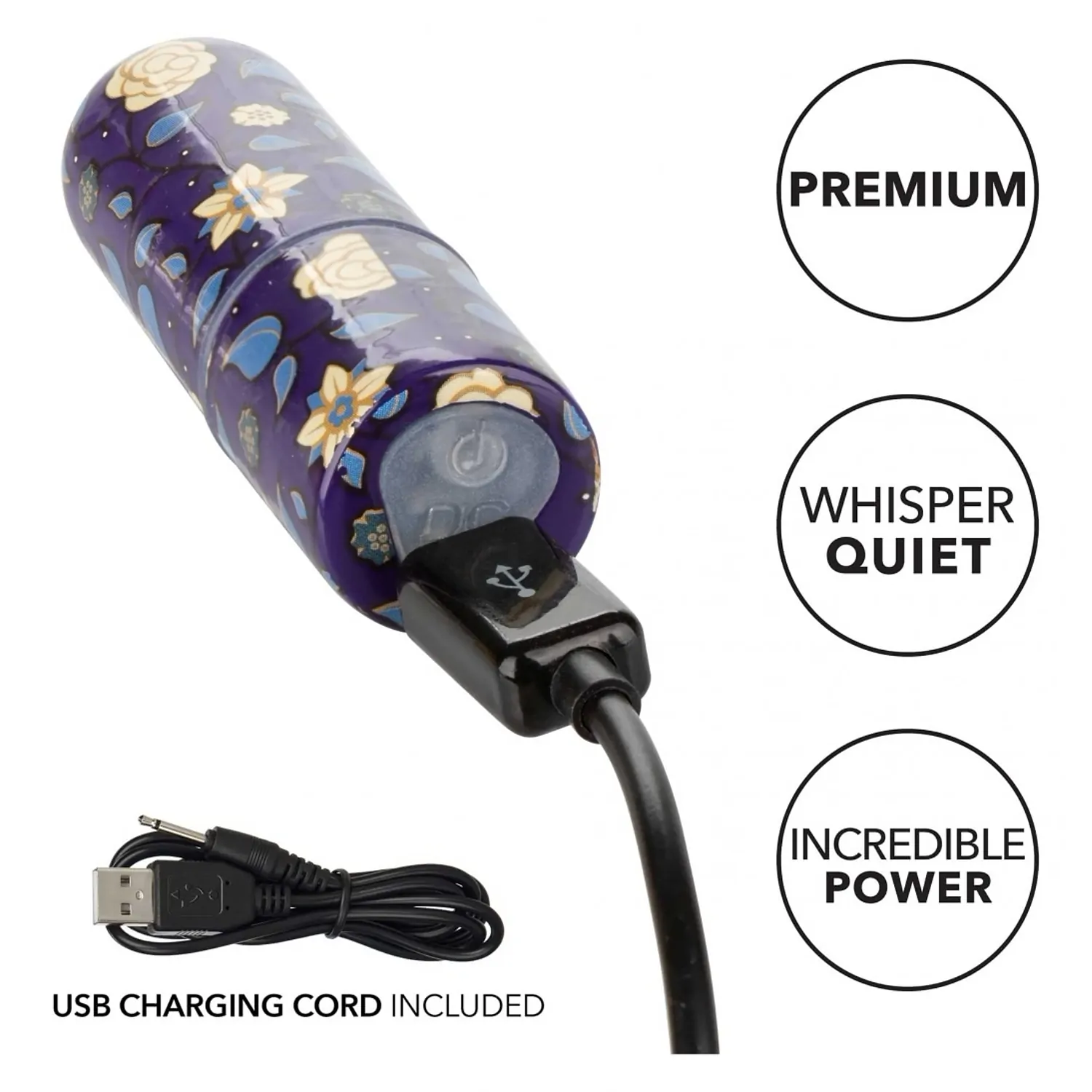 Modelul floral feminin și designul compact al acestui superb mini aparat de masaj îl vor face chiar și pe cel mai cu bun gust iubit să zâmbească înainte și după. Încărcați-vă pasiunea în numai 30 de minute, conectând cablul USB furnizat la portul de încărcare cu autoetanșare de pe spatele dispozitivului. Îmbrățișați până la 2 ore de vibrații la viteză mică și 70 de minute la viteză mare.