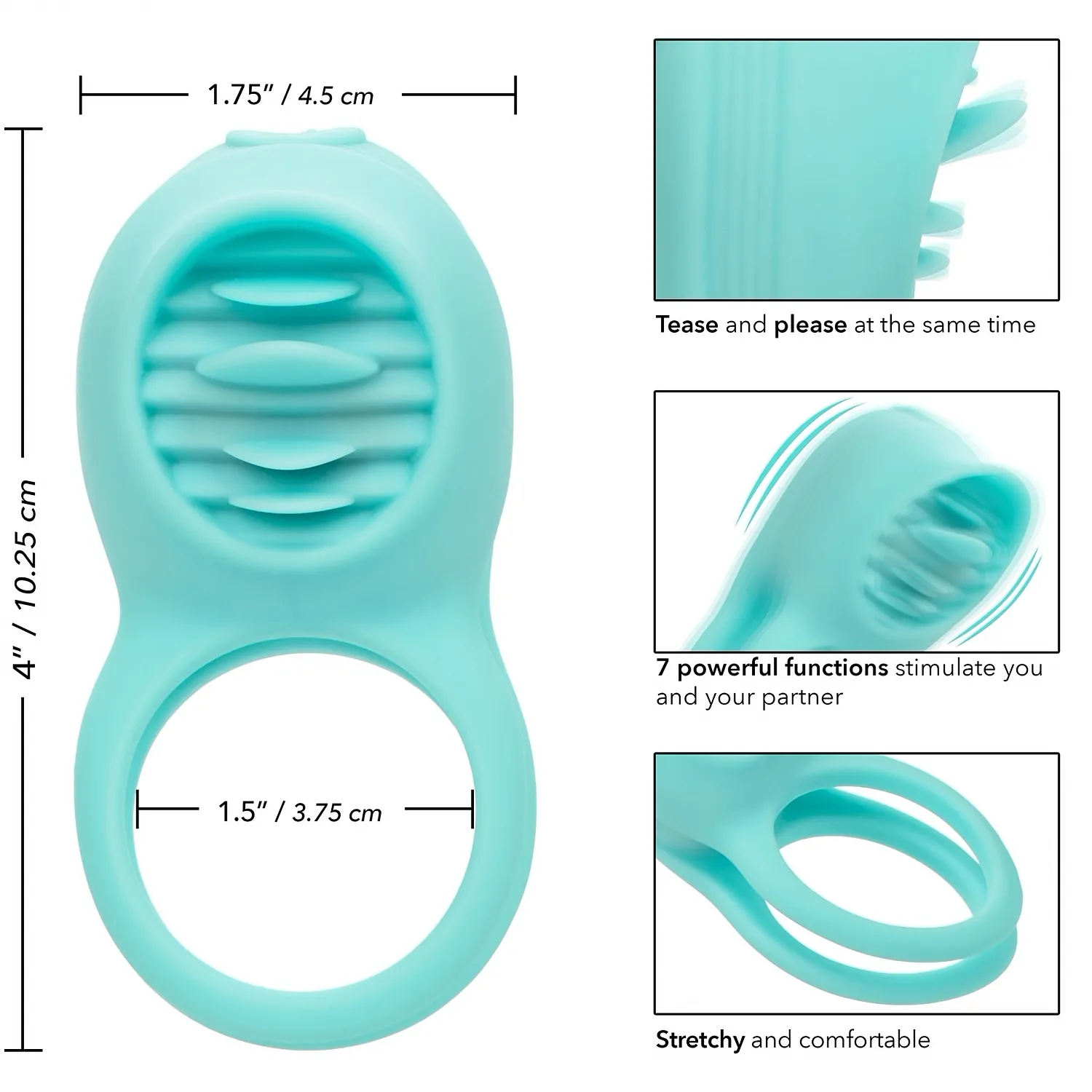 Vibrator French Kiss Enhancer reîncărcabil din silicon folosește combinația perfectă a 12 aplicații de vibrație cu un inel teaser pâlpâitor pentru a oferi o bucurie dublă de a tremura genunchi.