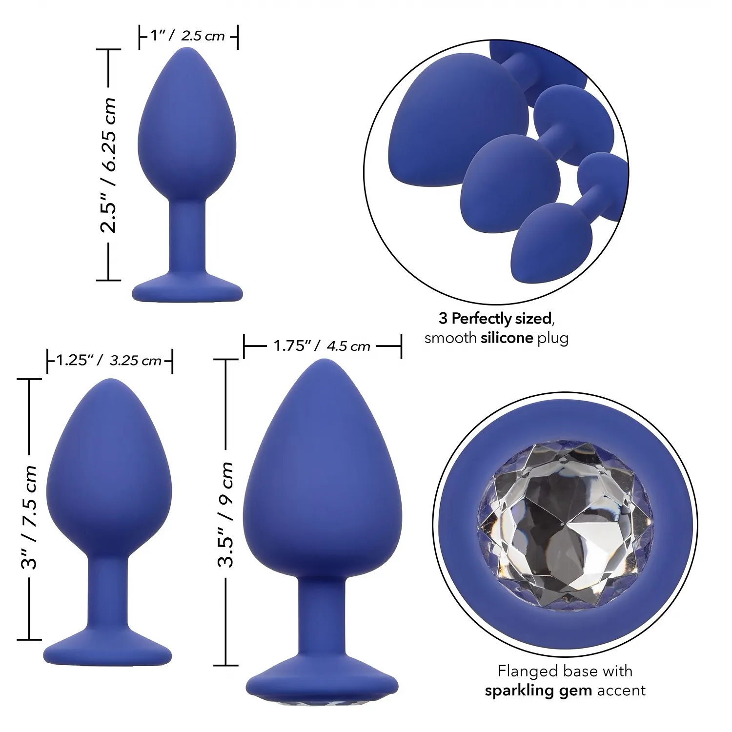 Deschide-te în lumea fabuloasă a satisfacerii ușilor din spate cu Cheeky Gems Albastru. Trusă de antrenament anal glamour include un set de 3 dopuri anale gradate cu o bază de bijuterie pentru a vă permite să creșteți în certitudine și comod surescitarea anale pasională.