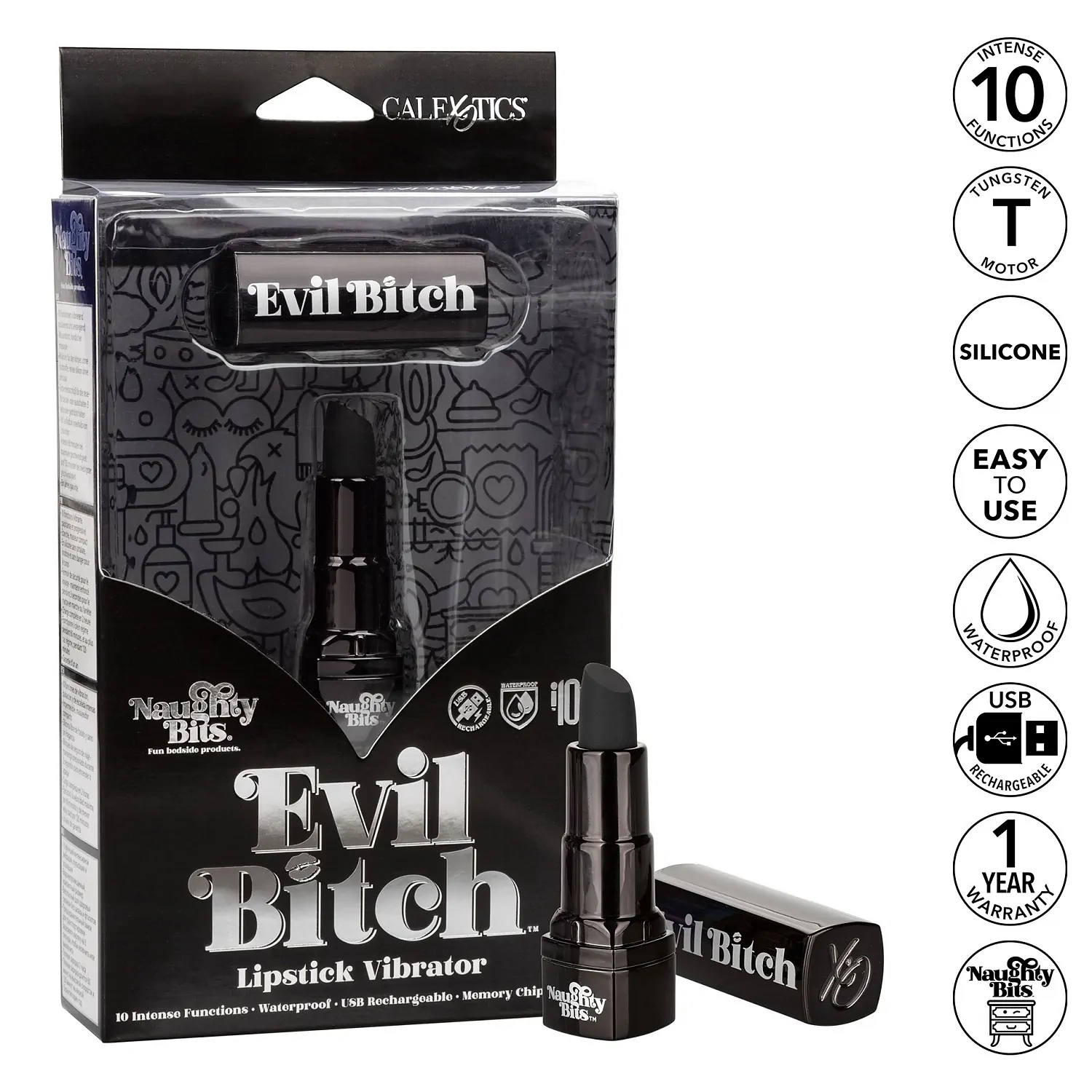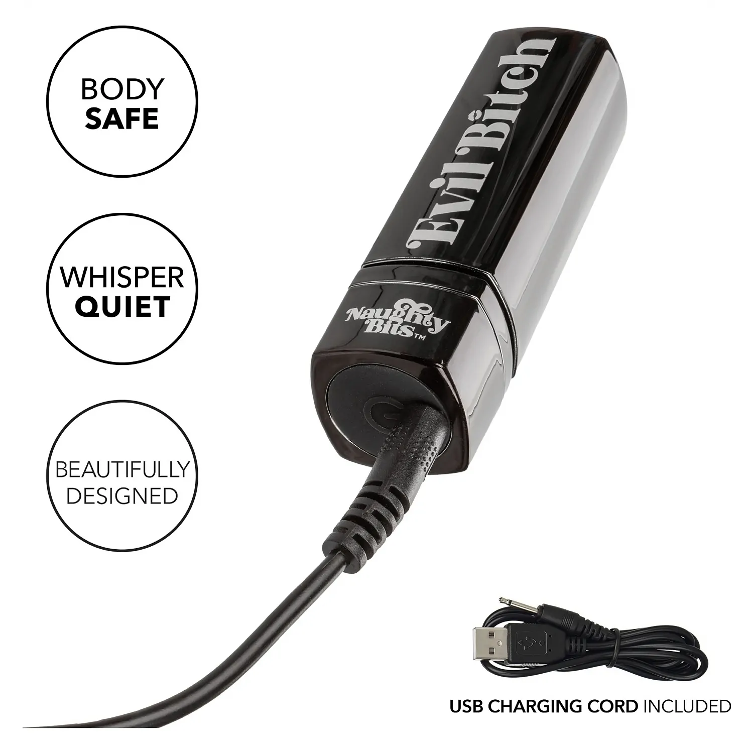 Din plastic ABS igienic și silicon hipoalergenic, Evil este sigură pentru corp, durabilă și ușor de curățat. Înainte și după momentul de joacă, spălați-l bine cu multă apă caldă și săpun sau folosiți un fluid/spumă preferat pentru îngrijirea jucăriilor.