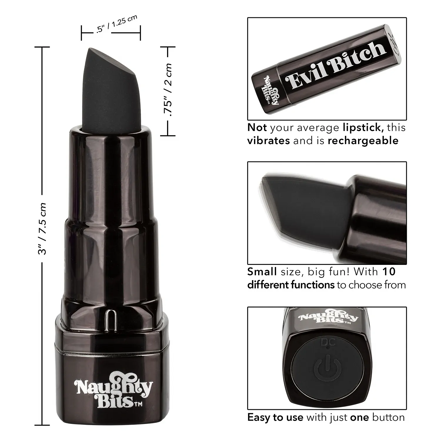 Scoateți porțiunea superioară a carcasei pentru a dezvălui un vârf de silicon înclinat, iubitor de punct dulce, apoi apăsați butonul unic de la bază pentru a derula prin ritmurile de vibrație.
