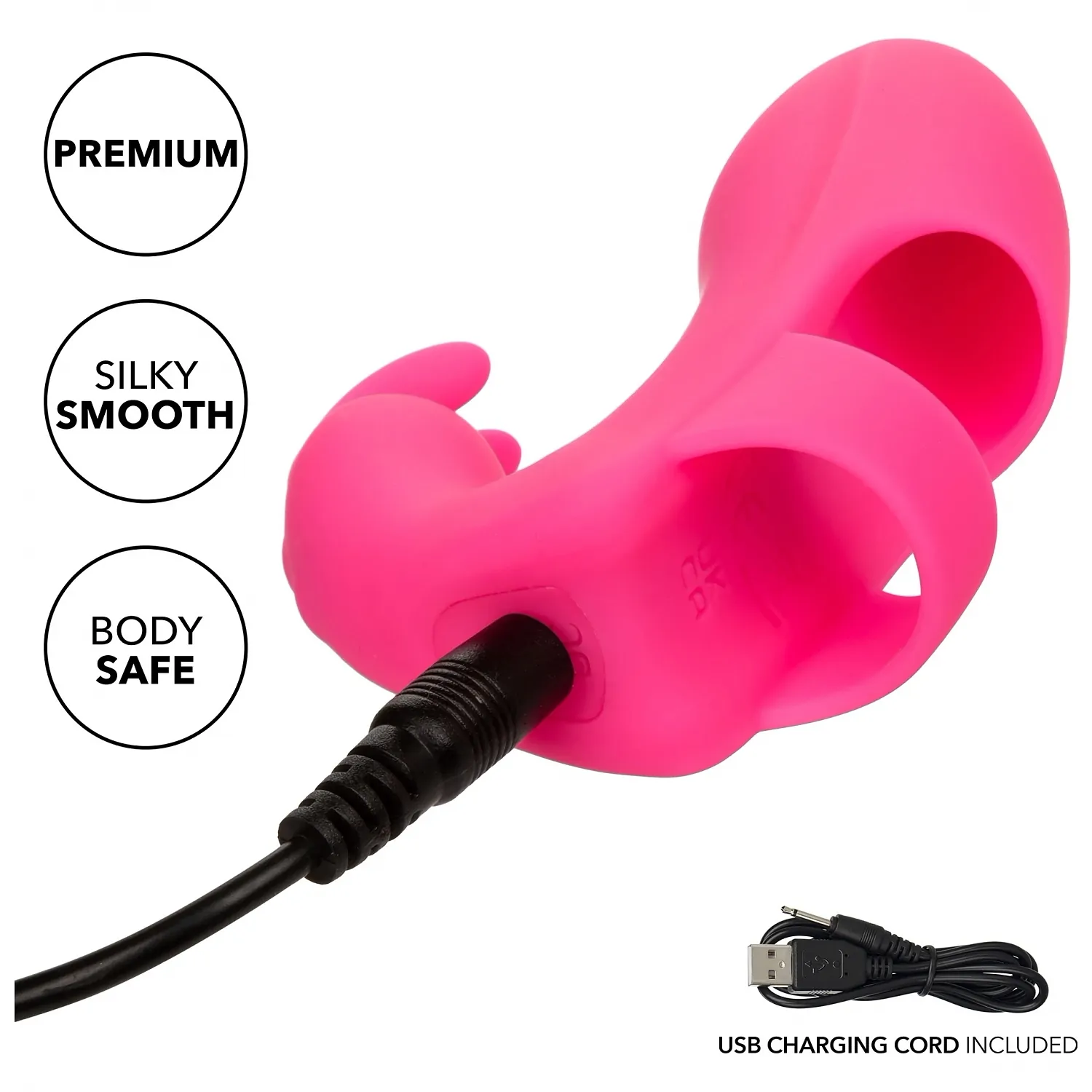 Acest vibrator pentru deget din silicon medicinal cu stimulator bunny pentru clitoris a fost produs pentru a ajunge prietenul cel mai bun al fiecărei femei. Are 10 aplicații de vibrații/pulsații/escaladare și o autonomie de până la 60 de minute.