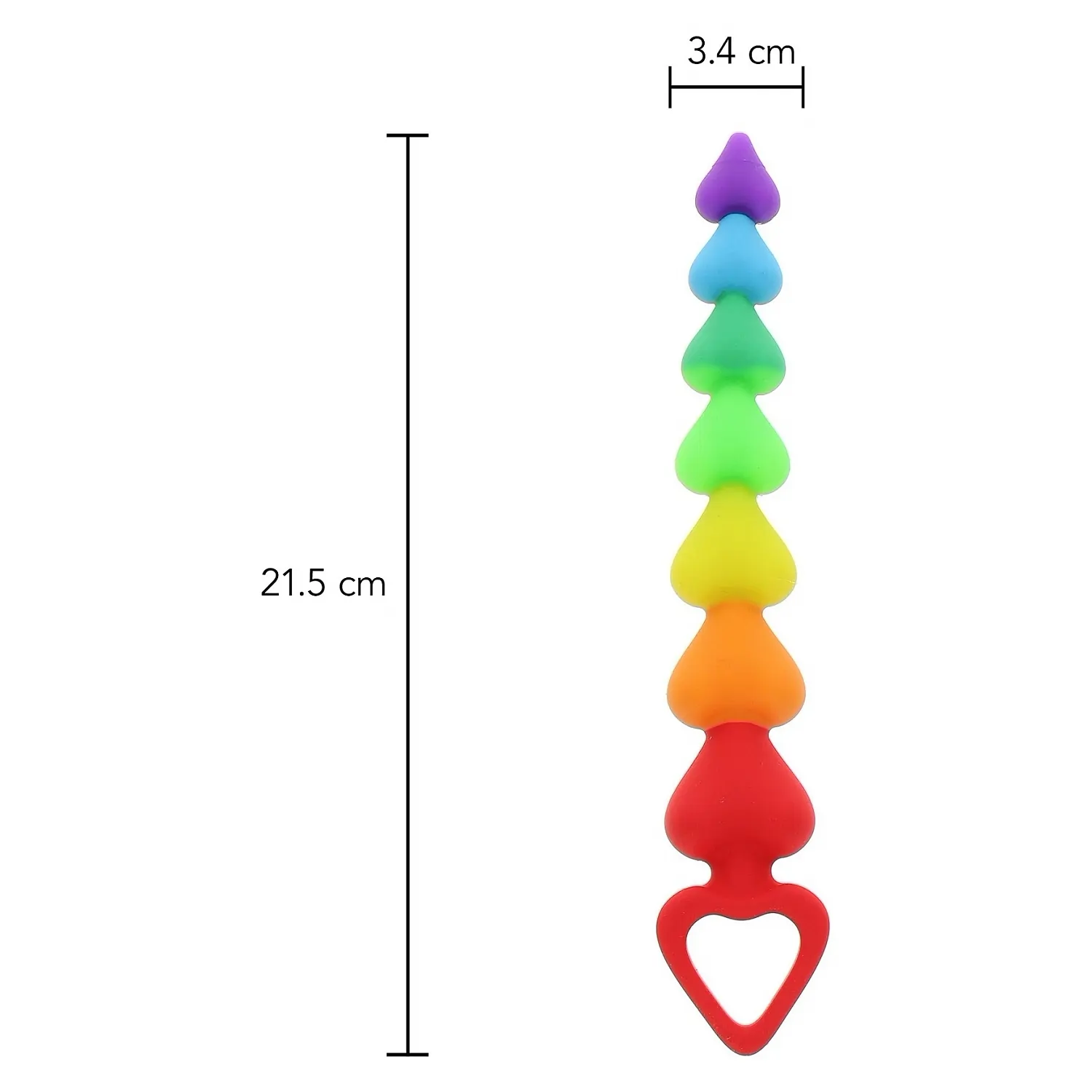 Mărgele wow Rainbow Heart Beads de la ToyJoy Anal Play conține 7 mărgele în variantă de inimă de culoarea curcubeului pentru distracția intimă supremă.