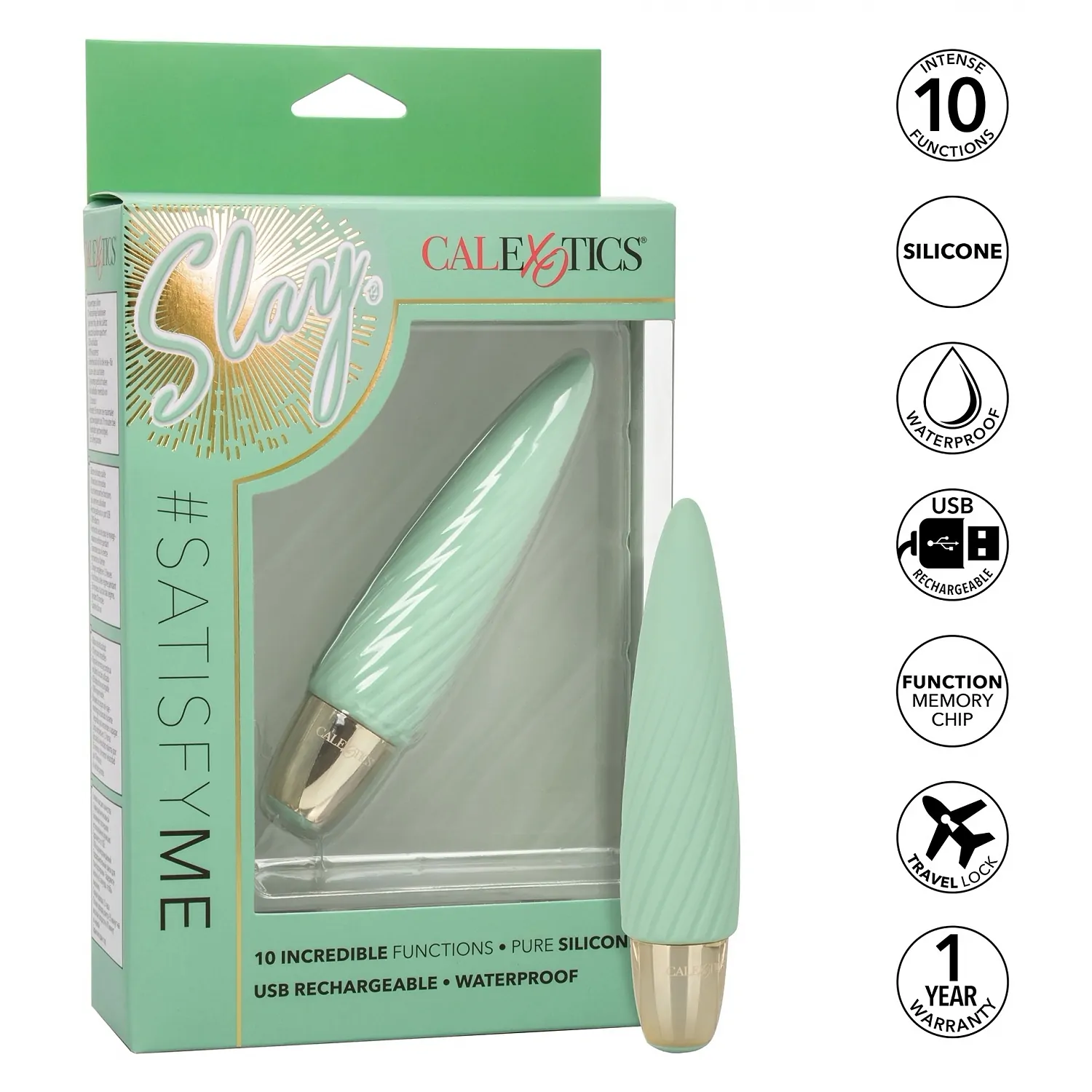 Introduceti senzualul Slay SatisfyMe in poseta sau geanta pentru a va tremura genunchii de placere oriunde ati merge. Mini-masajul se potriveste intre degete pentru a va îngăduie sa oferiti o tentatie precisa si senzatie de senzatie de vibratii.