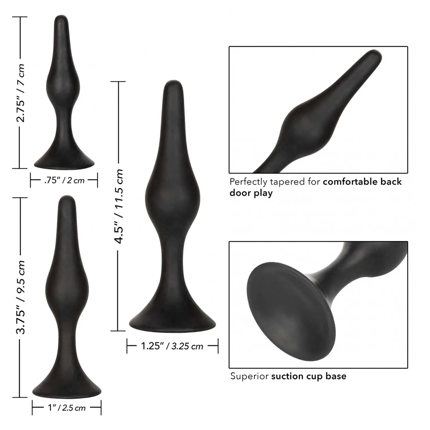 Poate te antrenezi pentru lucruri mai mari care vor veni, sau poate ești doar în căutarea a trei mărimi elegante și wow de potențial de pătrundere în ușă din spate cu care să te joci. În ambele cazuri, kitul de pornire anal cu silicon de la CalExotics are exact ceea ce tu și/sau partenerul tău pasionat de anal are nevoie pentru a te întinde, stimula și satisface.