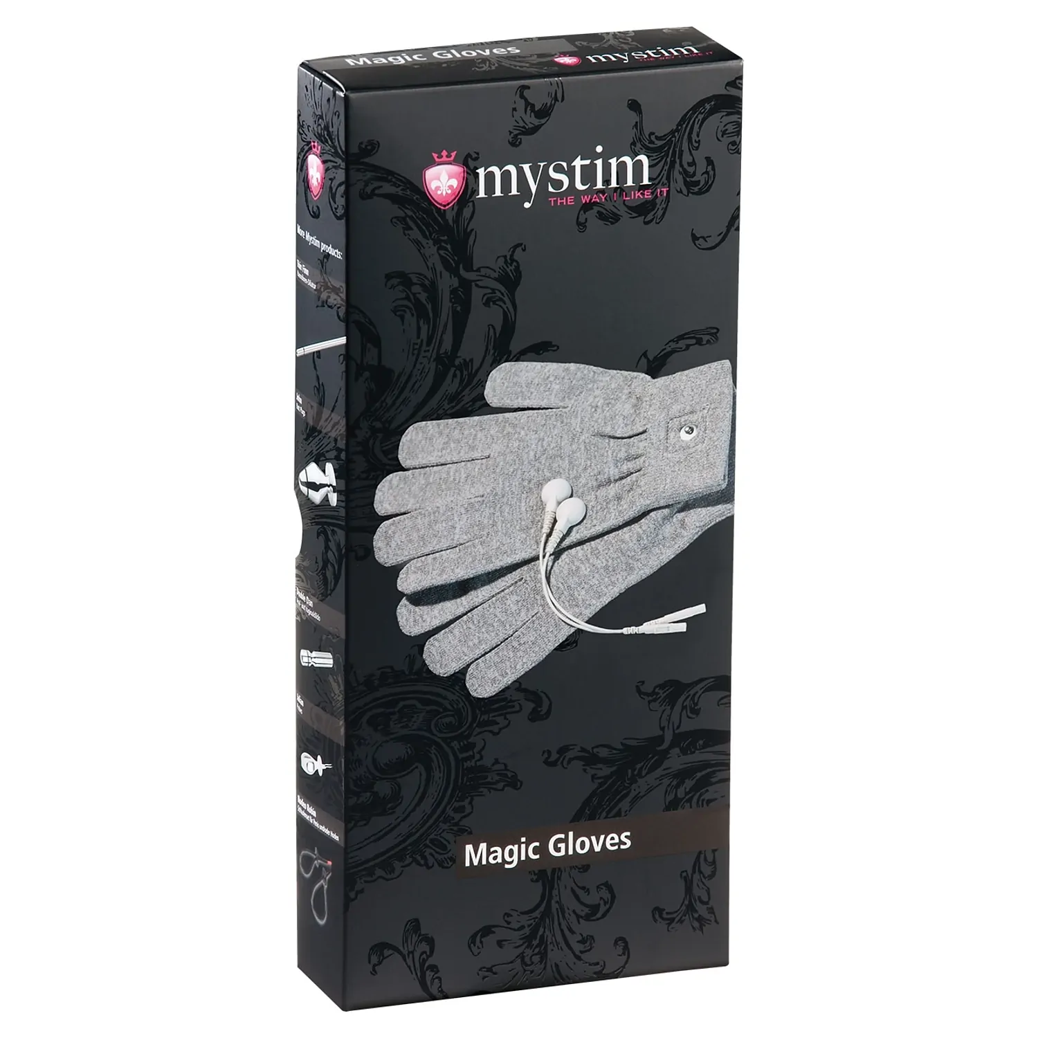 Pachetul include: -1 pereche mănuși Mystim Magic Gloves -5 perechi de mănuși fără pudră din vinil -1 pereche de adaptoare - se fixează la mufă de 2 mm