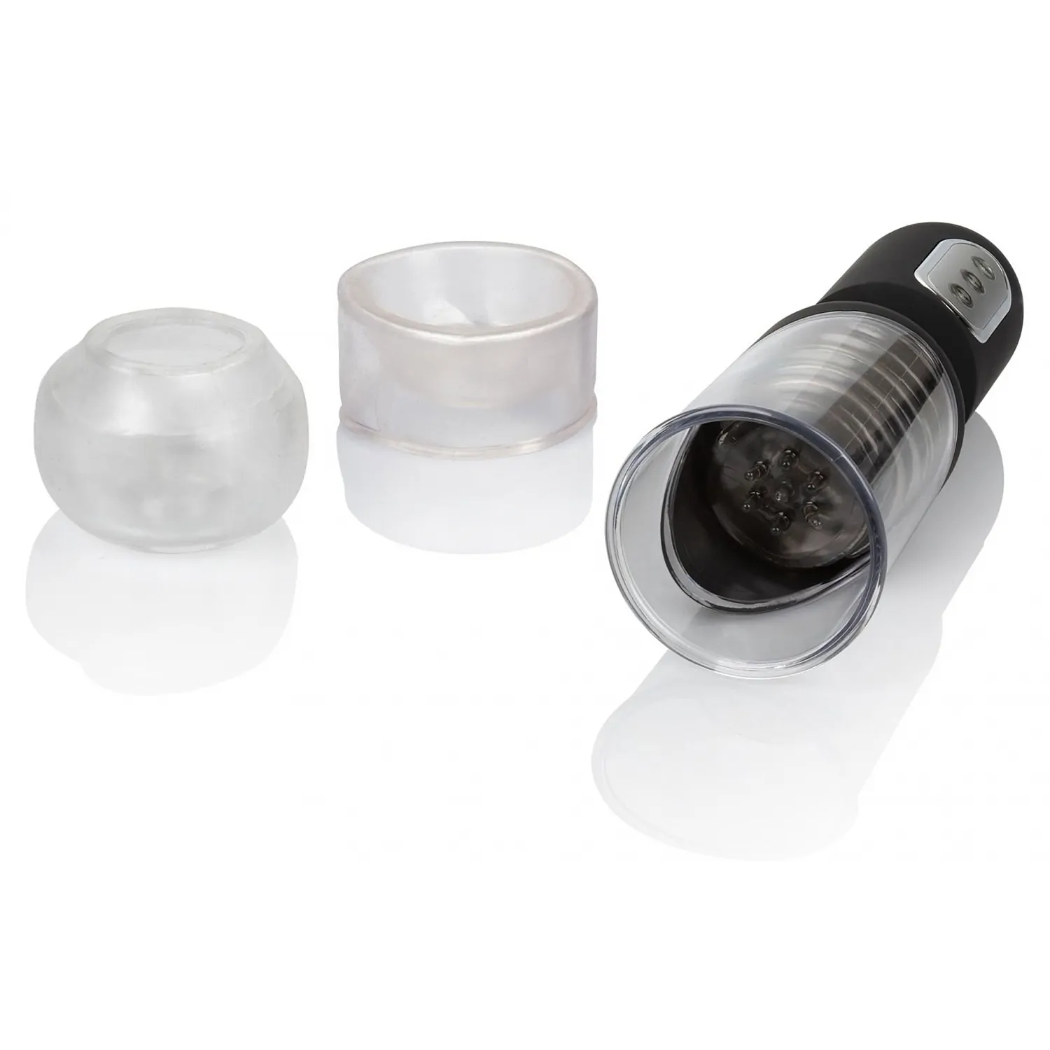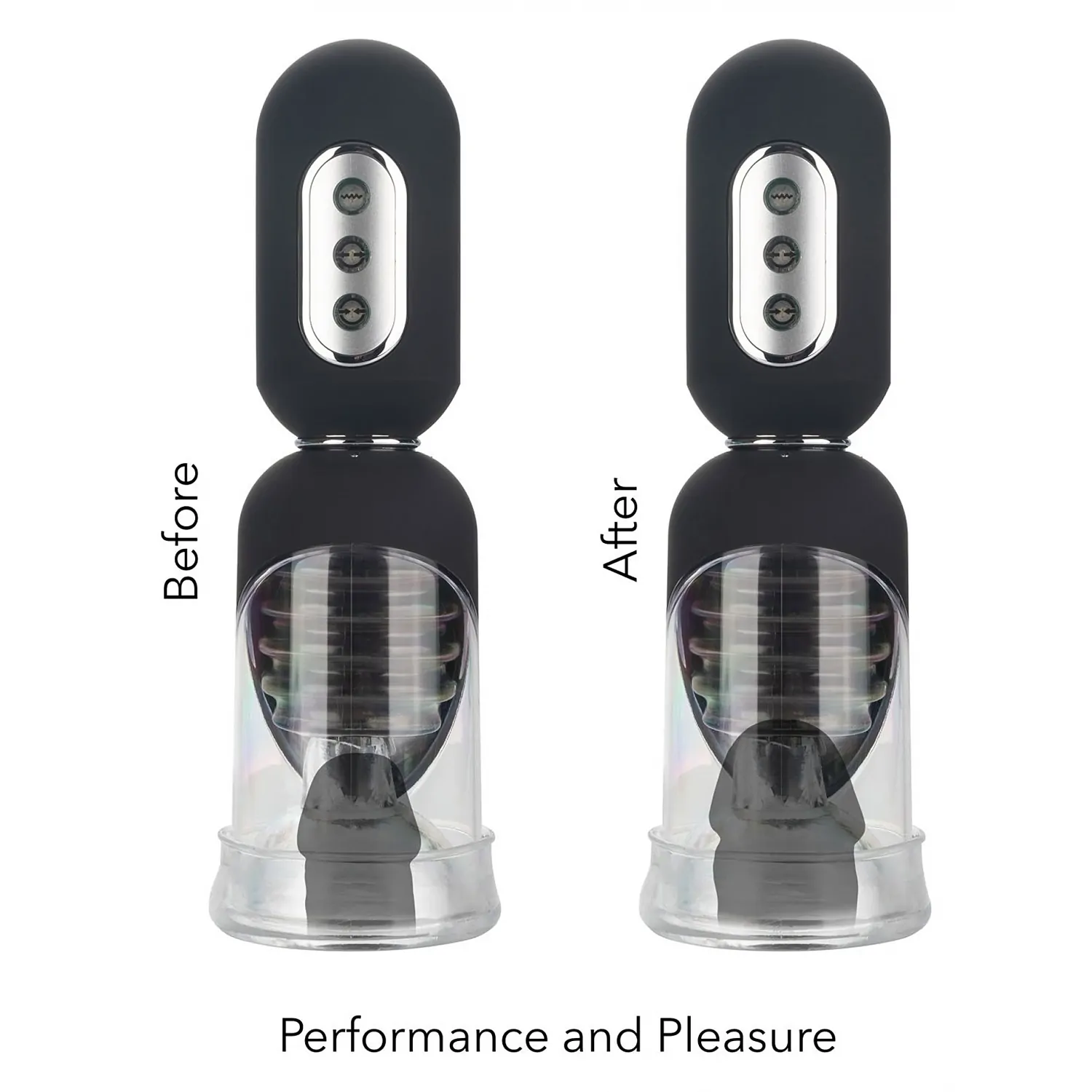 Bucurați-vă de aspirație puternică și de o etanșare superioară cu două manșoane unice interschimbabile. Uzați manșonul simplu pentru sesiunea obișnuită de pompare și celălalt manșon ultra-strâns pentru surescitarea tremurării genunchilor. Acest manșon detașabil al camerei cu punct final deschis este ușor de utilizat, ușor de curățat și nu necesită îngrijire specială.