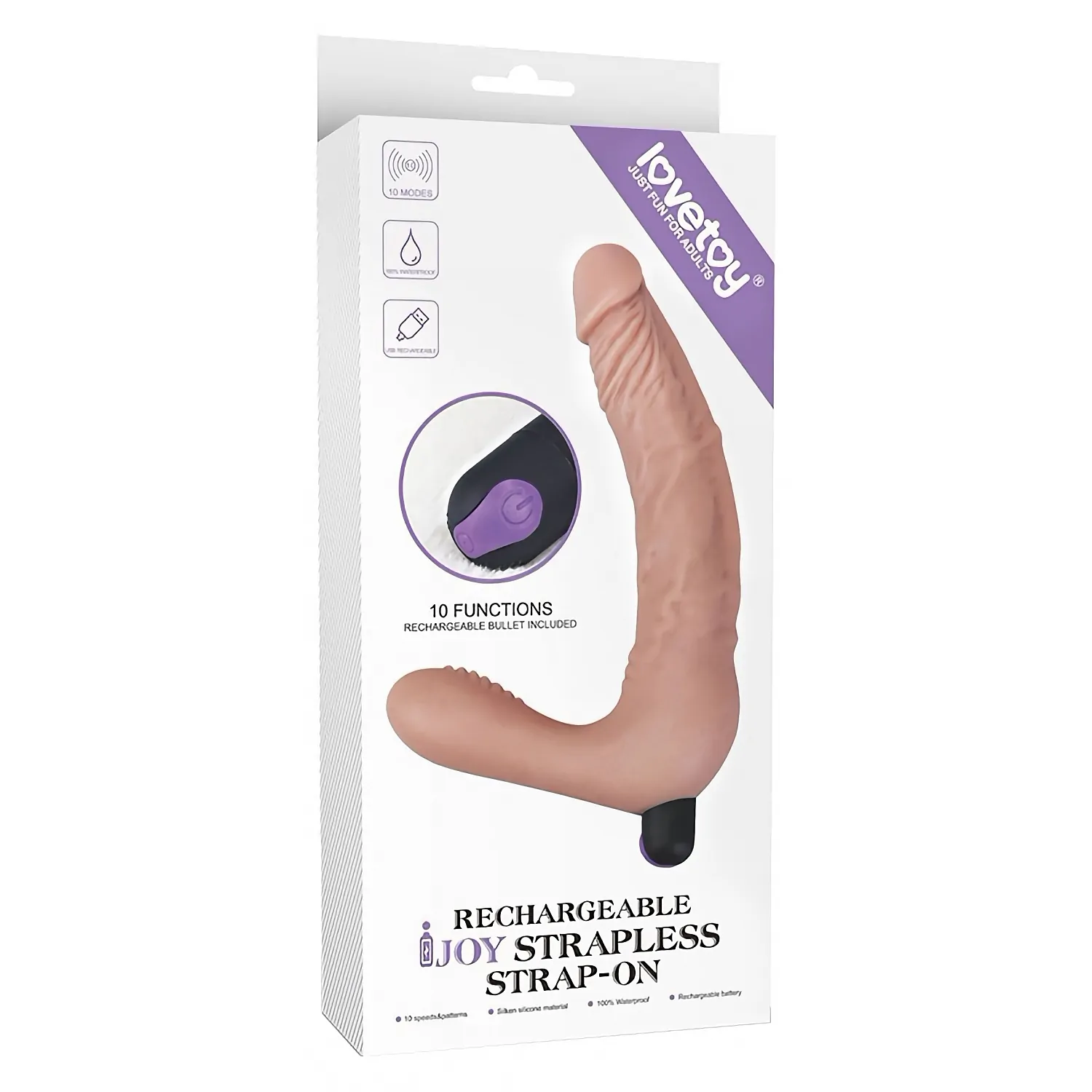 Strap On Reîncărcabil I-Joy Strapless este un vibrator cu acumulator cu 2 capete. Se poate folosi ca strap-on. Are 3 viteze și 7 funcții de vibrație. Vârful bulbos este împlinit pentru stimularea Punctul G sau a prostatei.