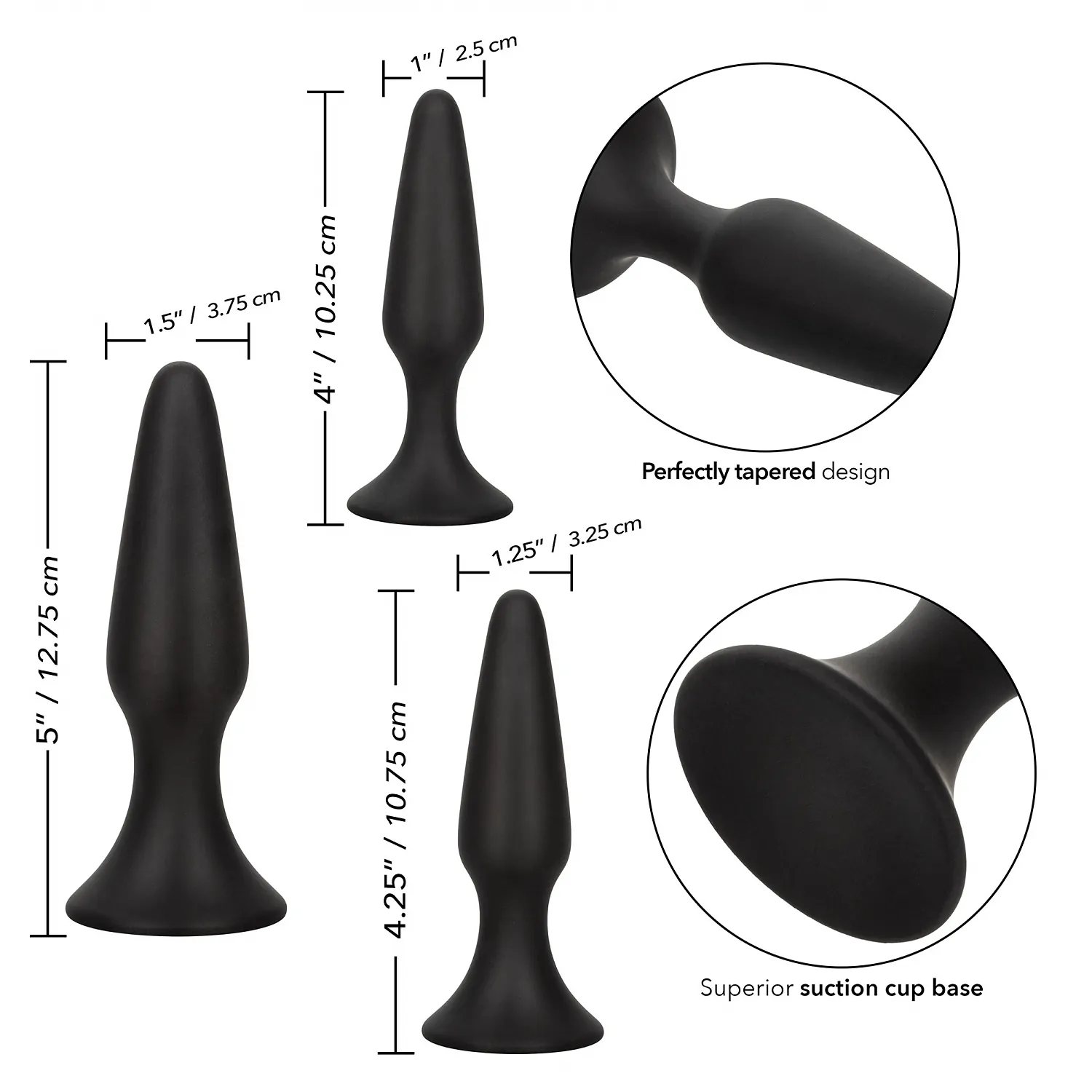 Trusă de antrenament obraznic conține 3 mărimi gradate de dopuri anale conice create pentru a vă îngăduie să vă extindeți în siguranță și confortabil orizonturile plăcerii. Pentru a vă bucura de tot ceea ce are de oferit mulțimea emoționantă a jocului anal, antrenamentul este pentru a asigura siguranța și plăcerea totală.