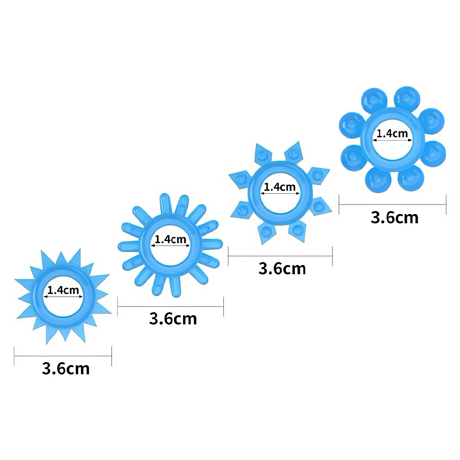 Kitul de inele Lumino Play de la Lovetoy este plămădit din 4 inele cu forme diferite. Acestea au un diametru de 1.4 cm, însă sunt extrem flexibile, potrivindu-se aproximativ pe orice penis.