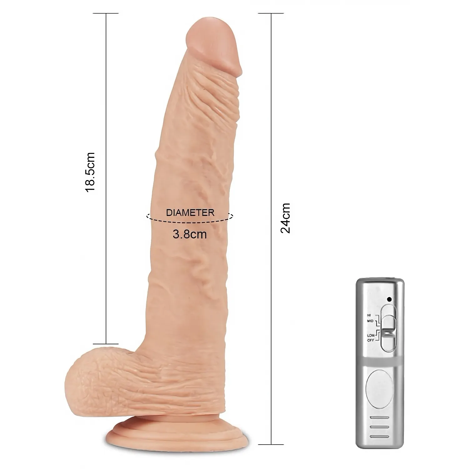 - Are 3 viteze de vibrație. - Este complet impermeabil. - Trunchiul este ferm dar flexibil, cu un vârf rotunjit în variantă de gland și un ax gros venos. - Testiculele sunt super realiste și comprimabile.