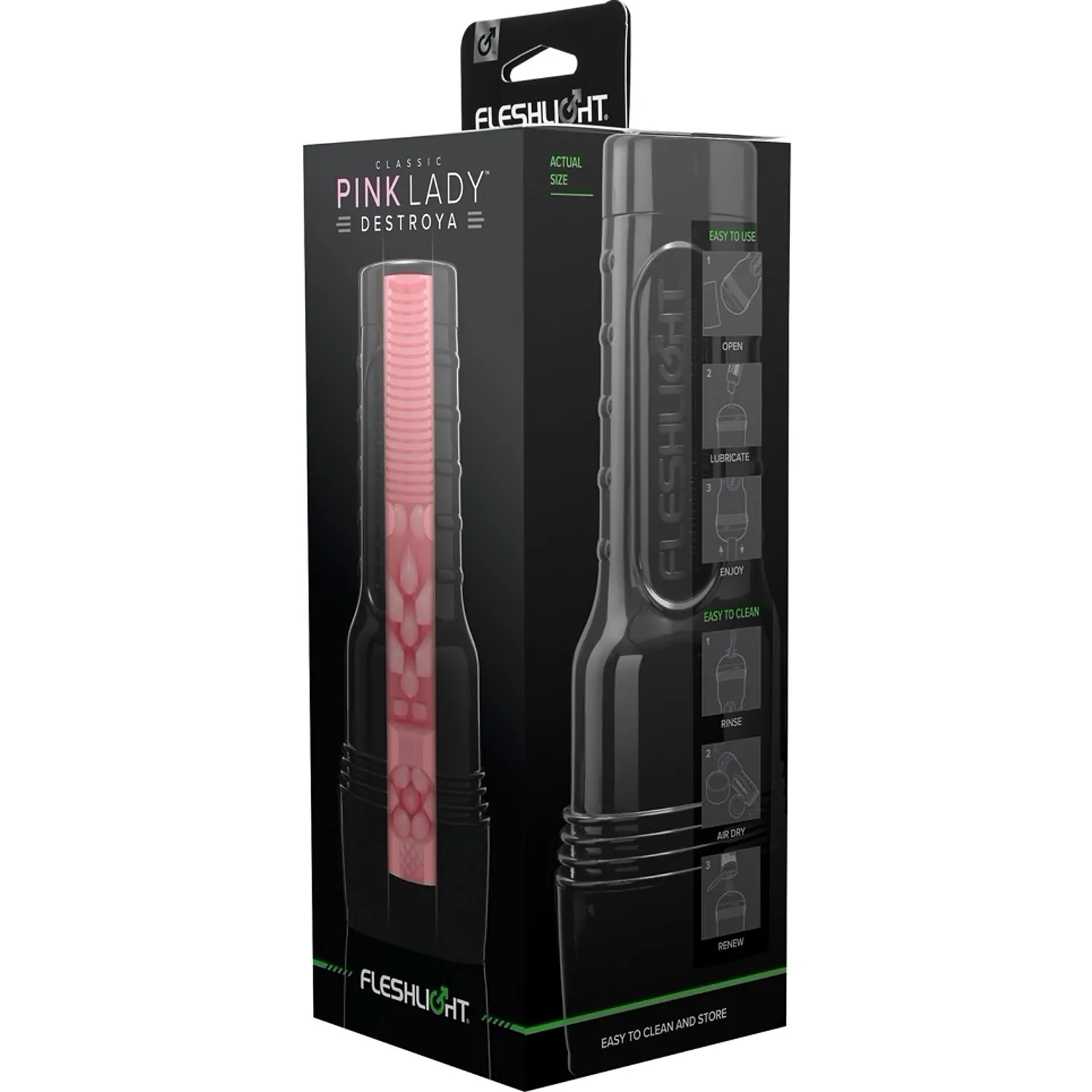 - Imită perfect un vagin de femeie, făcut din material ultra-realist SuperSkin ce transmite senzația naturală de piele. - Masturbatorul este ambalat într-o carcasă discretă și conține de canal partea interioară cu multiple texturi pentru ca experiența sa fie una cât mai realistă. - Baza carcasei dispune de un capac care poate fi deșurubat și care, o dată reglat, compune vid. - Cu cât capacul este mai strâns, cu atât puterea de aspirare este mai puternică. - Masturbatorul Pink Lady Destroya este ideal pentru bărbații care își doresc să experimenteze cele mai realistice și pătrunzătoare partide de sex, în orice moment își doresc, în intimitatea propriului dormitor. - Intră în dușul fierbinte și experimentează orgasme intense, deoarece masturbatorul este 100% rezistent la apă.