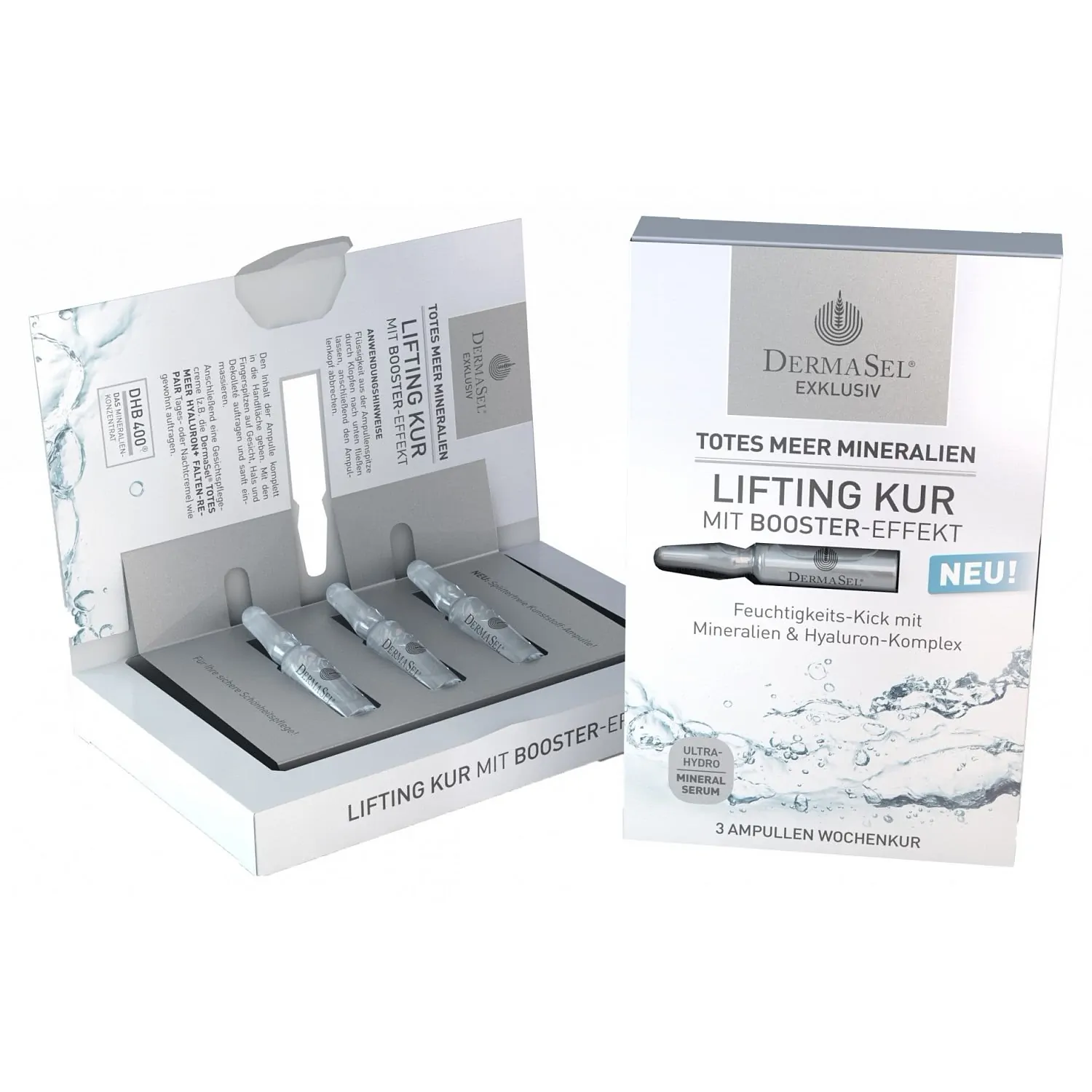 Testat dermatologic. Doza ridicată de acid hialuronic pur (sodium hialuronat) acordă un efect optim de lifting în combinație cu formele moleculare înalte și joase. Moleculele înalte de acid hialuronic reduc ridurile și adânciturile ridurilor profunde, în timp ce moleculele joase de acid hialuronic păstrează apa, conferind hidratare și reumplu spațiile. Sarea lichidă din complexul DHB 400 de la Marea Moartă, concentrat mineral natural, conferă umiditate tenului, stârnește metabolismul celular și îmbunătățește structura tenului.