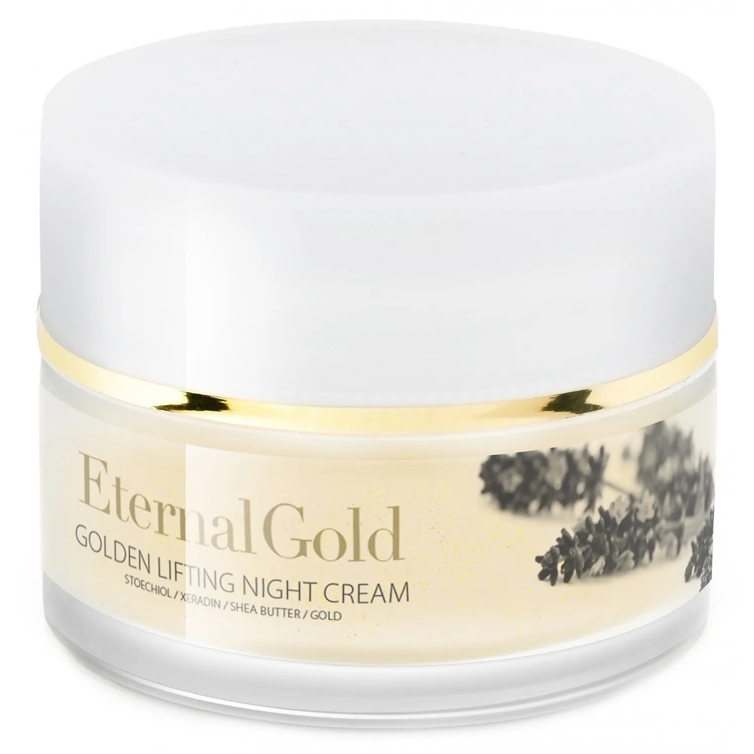 CREMĂ DE NOAPTE CU AUR, EFECT LIFTING - SERIA ETERNAL GOLD elixir al tinereții. Este bogată în acizi grași esențiali și bază vitaminică, cu efect de hrănire și tonifiere.