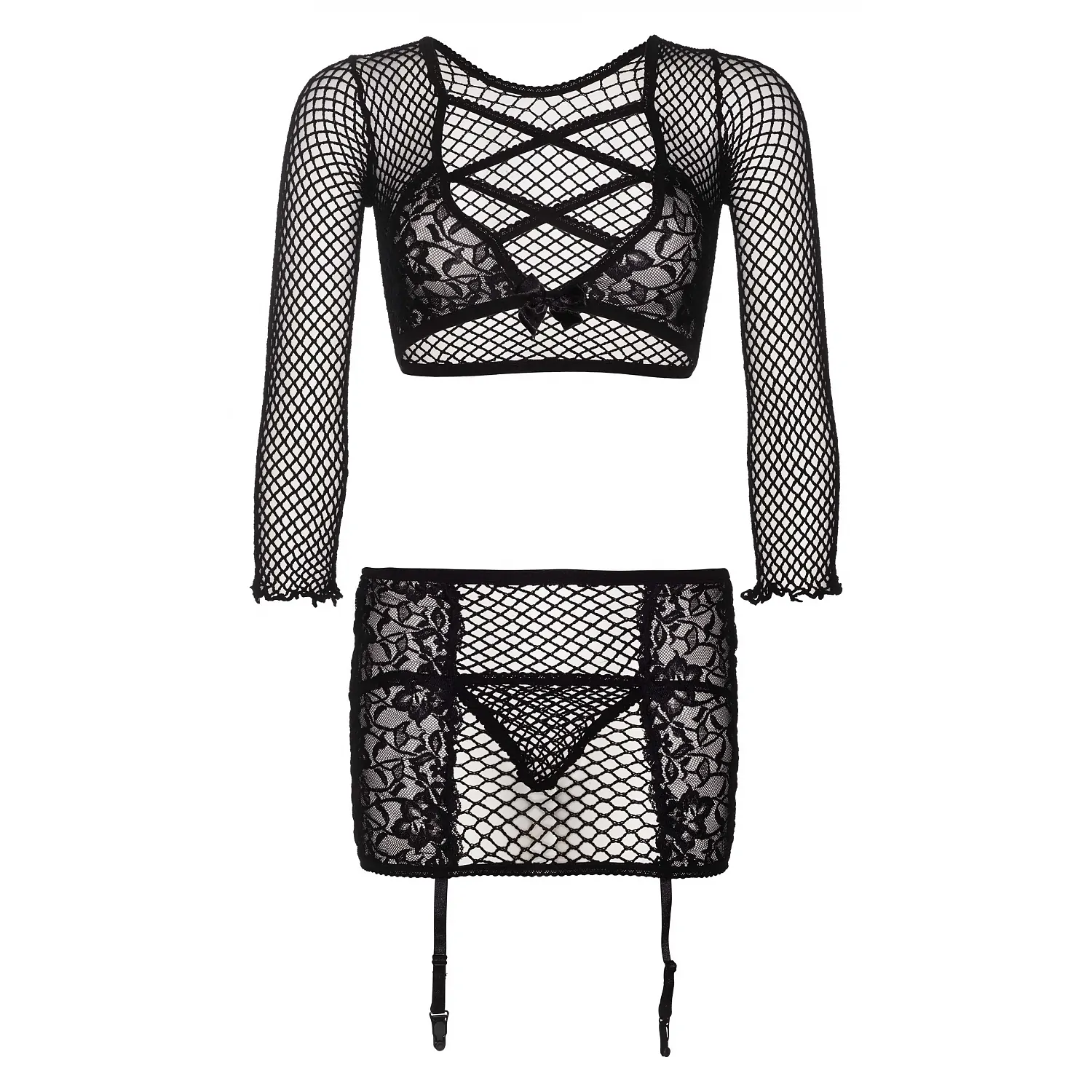 Crop Top And Skirt Leg Avenue închis la culoare este o piesă de lenjerie surprinzătoare și grozav de cuceritoare, gândită și fabricată de prestigiosul brand de lenjerie Leg Avenue.
