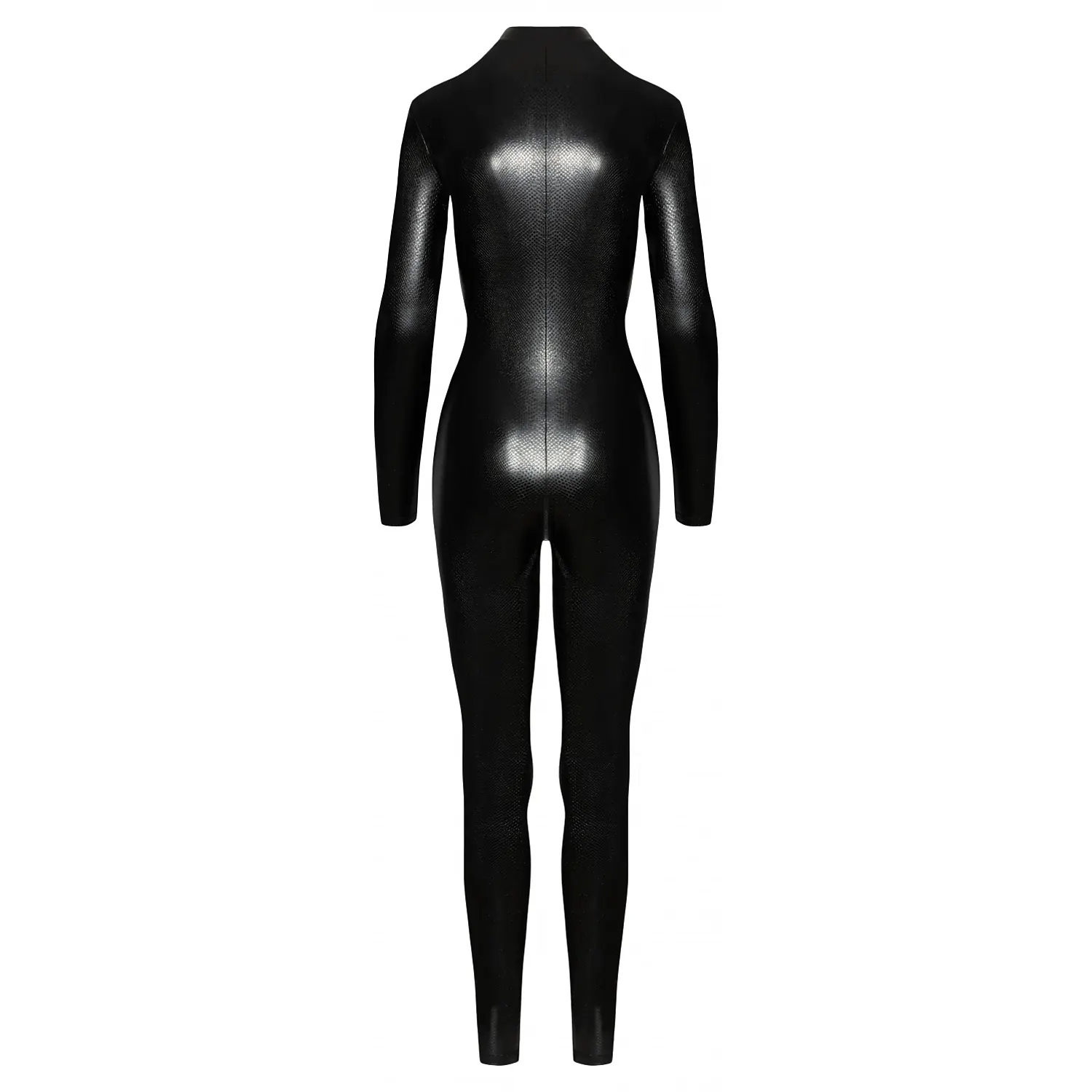 Un stil exclusivist cu un model elegant de tegument de șarpe! Salopetă strânsă, cu mâneci lungi, de la Noir. Se potrivește în talie, este confecționată dintr-un material mat strălucitor și strălucitor și are un model de piele de șarpe.