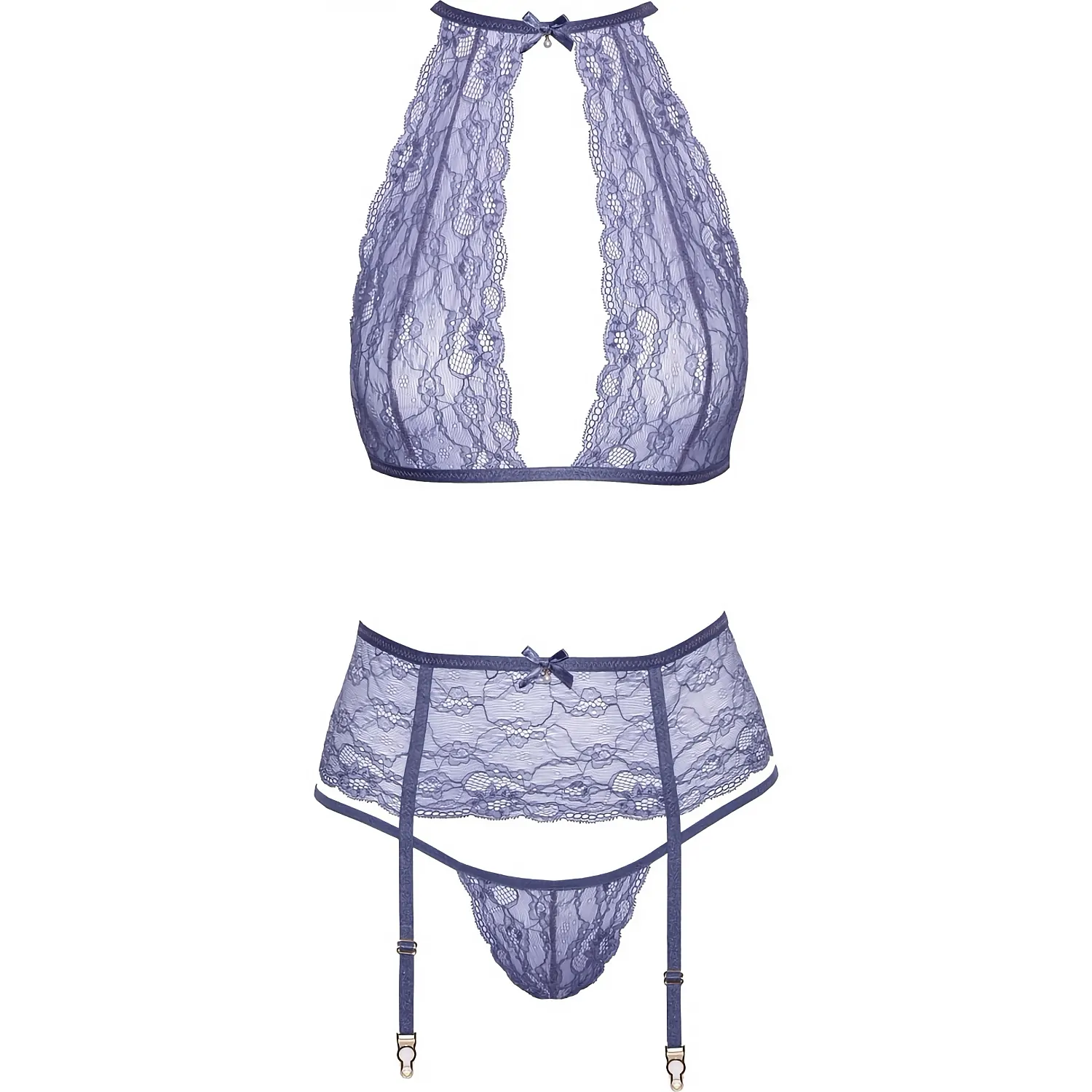 Este mătăsos și elastic, ceea ce înseamnă că este extrem de confortabil de purtat. Sutienul elegant are o prindere cu cârlig la spate și la spate. Portjartierul are o prindere cu cârlig la posterior și bretele reglabile. Bikini-ul mic este excepțional de seducător din pricina celor două bretele înguste, elastice, care se întâlnesc în zona picioarelor. Fără ciorapi. Articolul este confecționat dintr-un material cu elasticitate.