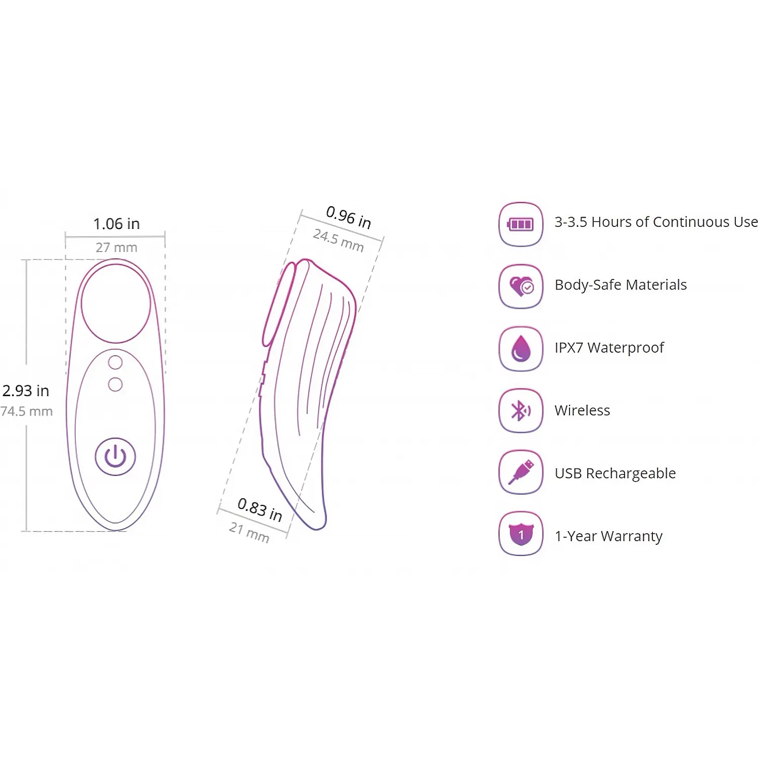 Acest vibrator cu design ergonomic este fără greutate de atașat la chiloți cu ajutorul clamei magnetice.Conectați vibratorul la aplicația gratuită Lovense Remote. Puteți folosi aplicația pentru a controla la nivel global pulsatorul secret pentru chiloți, așa că asigurați-vă că concubinul are această aplicație pe telefon.