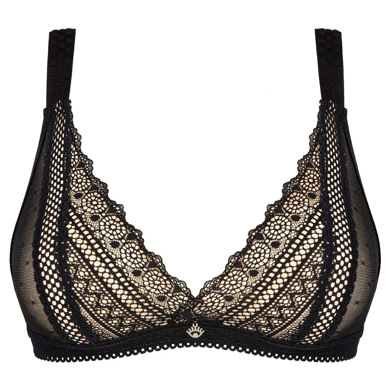 Simte-te comod în indiferent ce clipă al zilei cu acest sutien. Cupele nu sunt prevăzute cu sârme de susținere și sunt realizate din tul de tentă crem dublat de tul închis la culoare brodat. Sutienul are închidere tip moș-babă, la spate, permițând ajustarea acestuia. Bretelele late sunt ajustabile pentru o potrivire perfectă. Articolul este fabricat dintr-un material elastic.