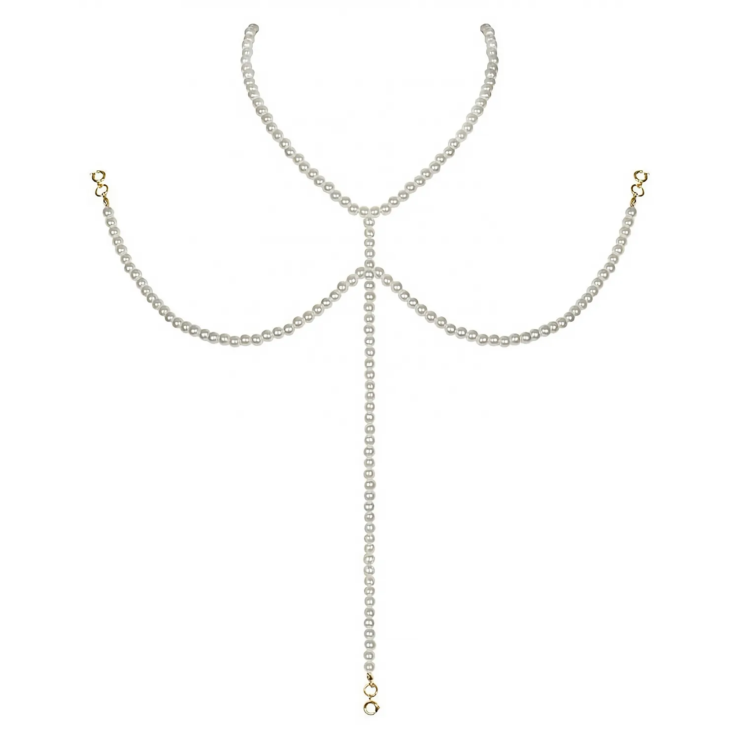 - colier super cu mai multe agrafe - arată elegant sub gât și între sâni - perle albe cu o sclipire rafinată - substanțe prietenoase cu pielea de mare durabilitate (82% plastic ABS, 18% fier metalic)
