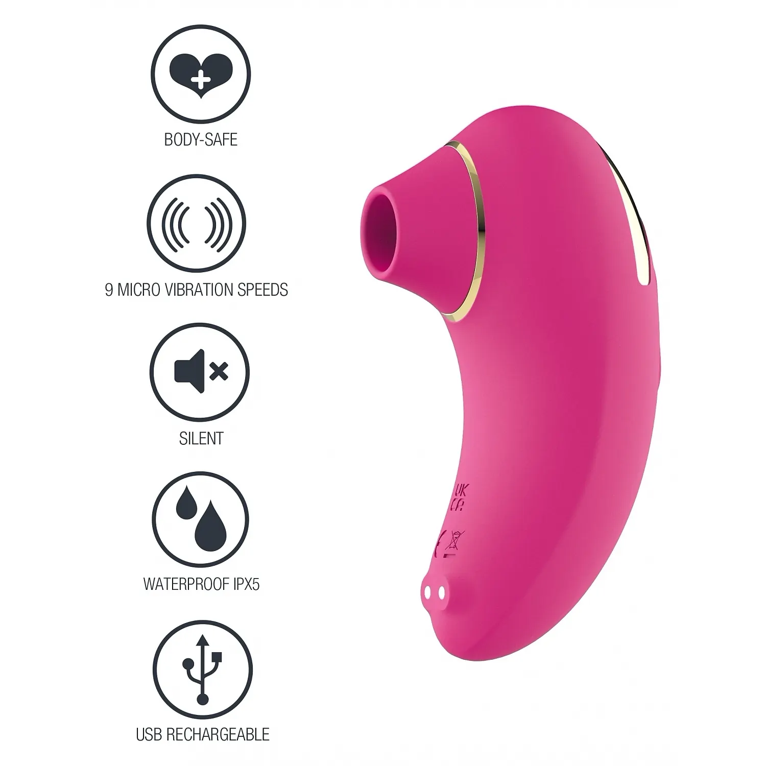 Probați senzații intense cu Infinite Love Clitoral Stimulator - simulează sexul oral cu 9 micro-vibrații uimitoare, plasate strategic pentru a stimula clitorisul. Estetică adaptat corpului și finisaj împlinit cu accente aurii. Discret și compact, impecabil pentru bucurie oriunde, oricând. Pregătiți-vă pentru un orgasm uluitor!
