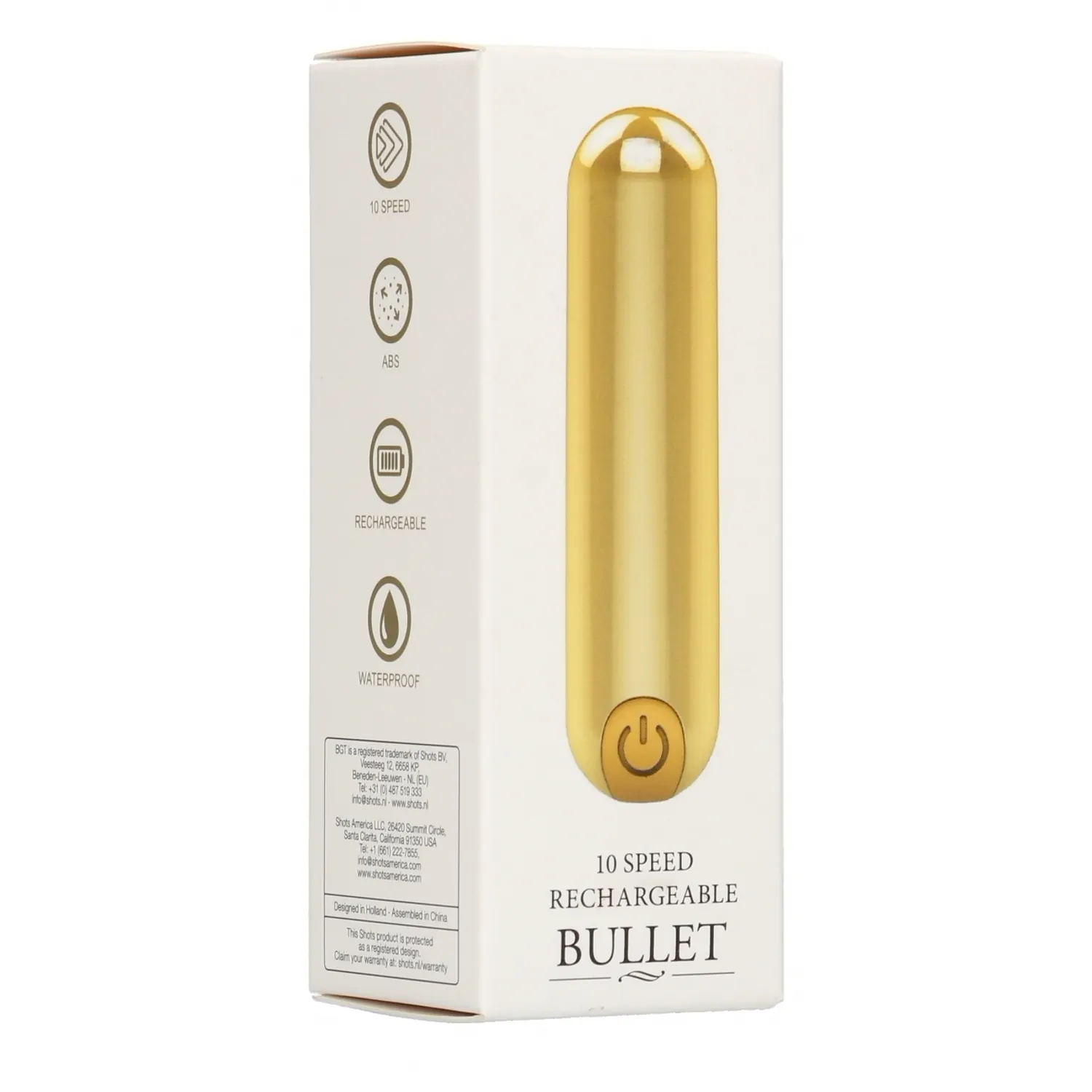 ✔Lungime: 7.7 cm ✔Diametru: 2 cm ✔Culoare: Auriu ✔Material: ABS ✔Import: Olanda ✔Brand:Shots