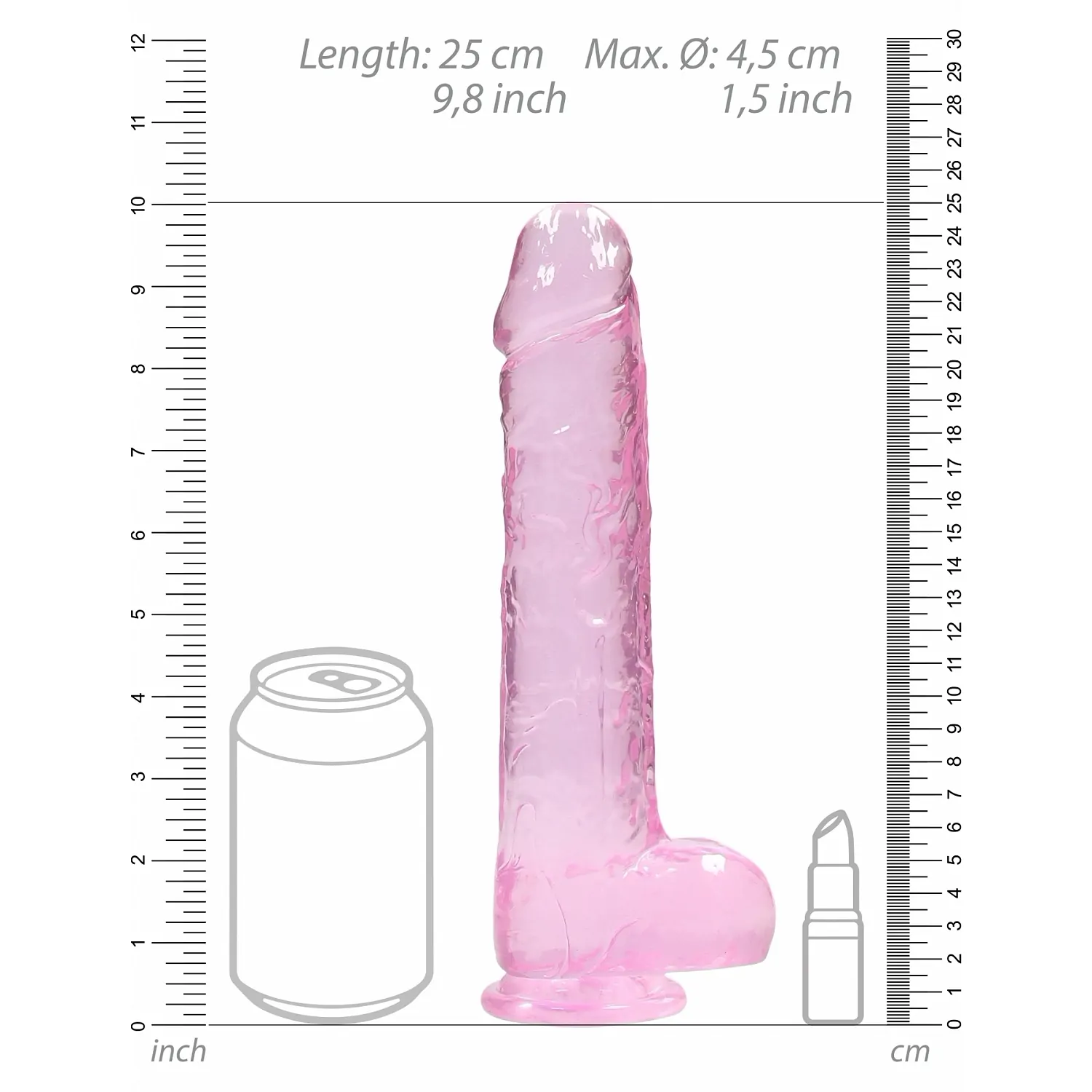 - Design Realistic: Modelat cu atenție pentru a dărui o practică cât mai realistă, acest dong conține de contururi normale care vor satisface cele mai exigente gusturi. - Ventuză Puternică: Echipat cu o ventuză intensă și stabilă, acest penis artificial poate fi fixat cu ușurință pe absolut orice suprafață netedă. Bucură-te de senzații hands-free într-un mod sigur și eficient. - Materiale de Înaltă Calitate: Realizat din TPE de excepție superioară, acest penis virtual este phthalate-free, latex-free, body-safe și non-poros. Aceste caracteristici nu numai că îl fac ușor de curățat, dar îi oferă și o durabilitate remarcabilă. - Mărimi Perfecte: Cu o înălțime totală de 25 cm (9.8 inch) inclusiv ventuză, o lungime inserabilă de 19 cm (7.5 inch) și un calibru de 4.5 cm (1.78 inch), acest dildo este zămislit pentru a satisface trăirile individuale cu o precizie impresionantă.