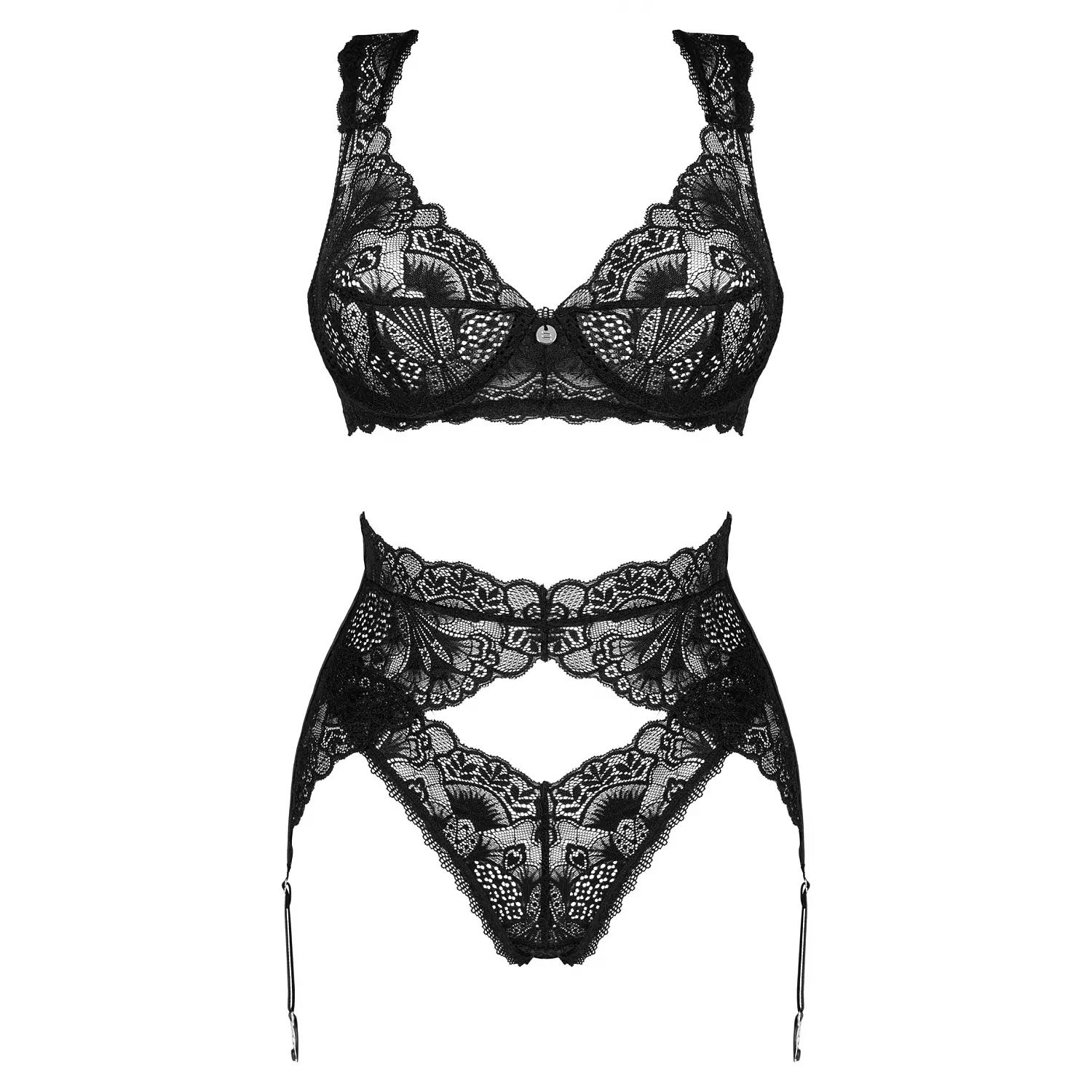 Set Obsessive Donna Dream 3 Componente închis la culoare este o piesă de lenjerie precoce și inimaginabil de seducătoare, gândită și realizată de excepționalul brand de lenjerie Obsessive din Polonia.